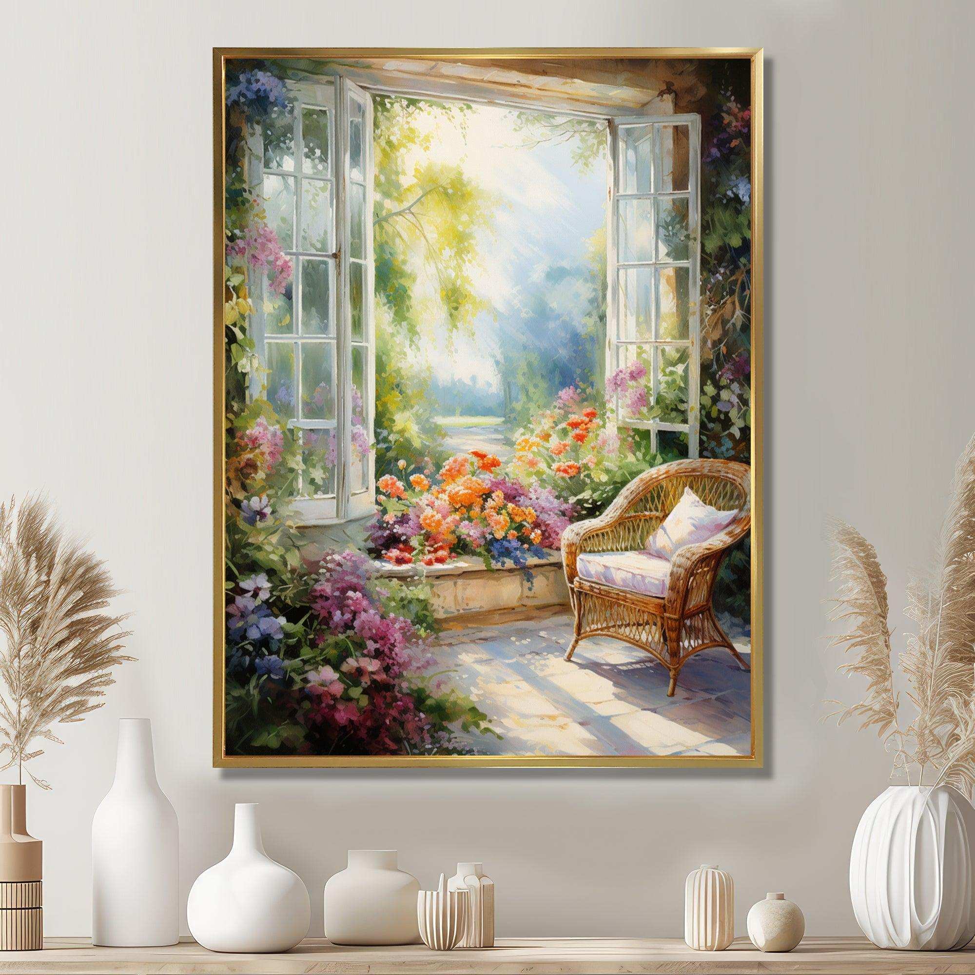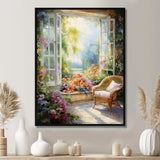 Orange and green french window view III - Floral Canvas Wall Art