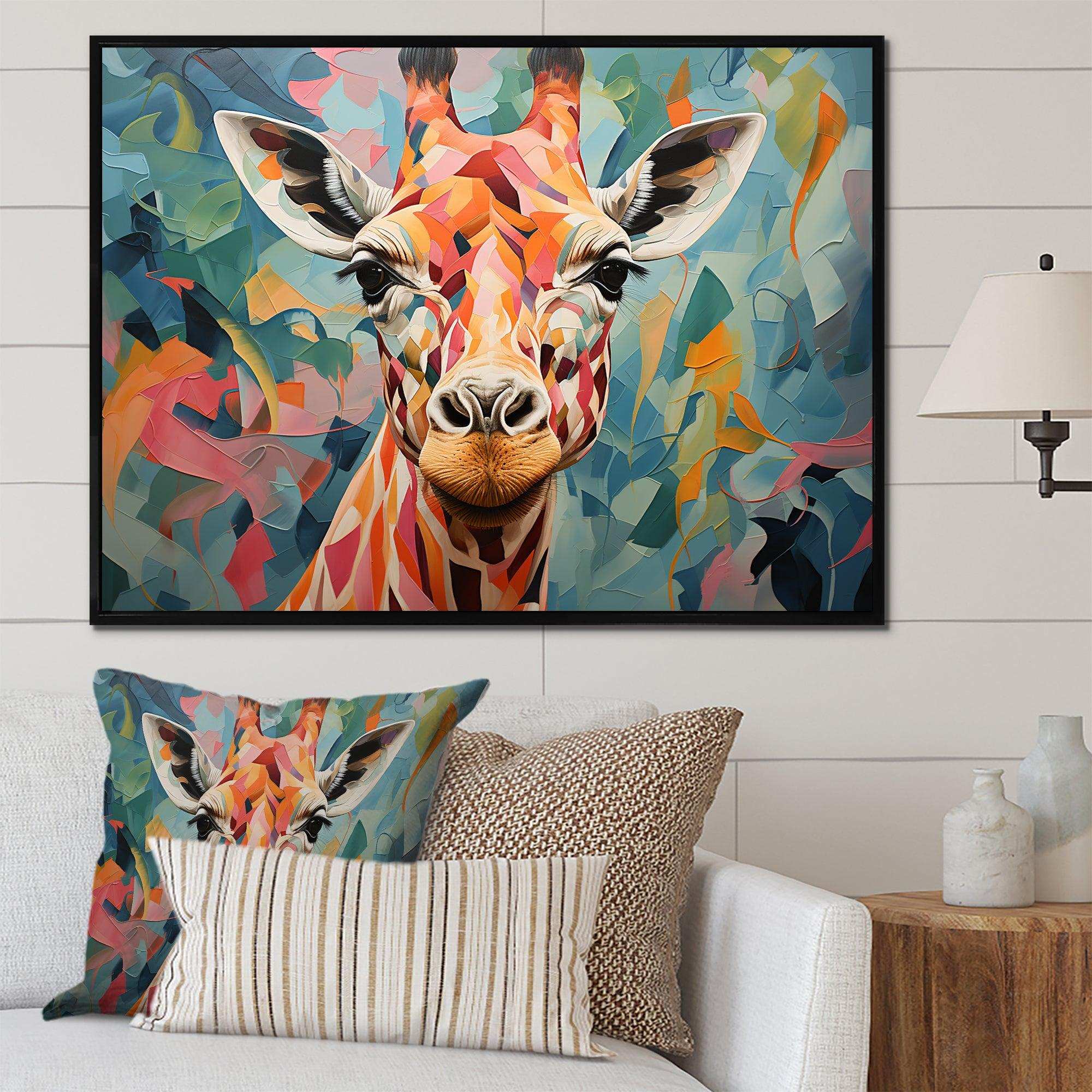 Orange and green Giraffe Portrait - Animals Canvas Wall Art