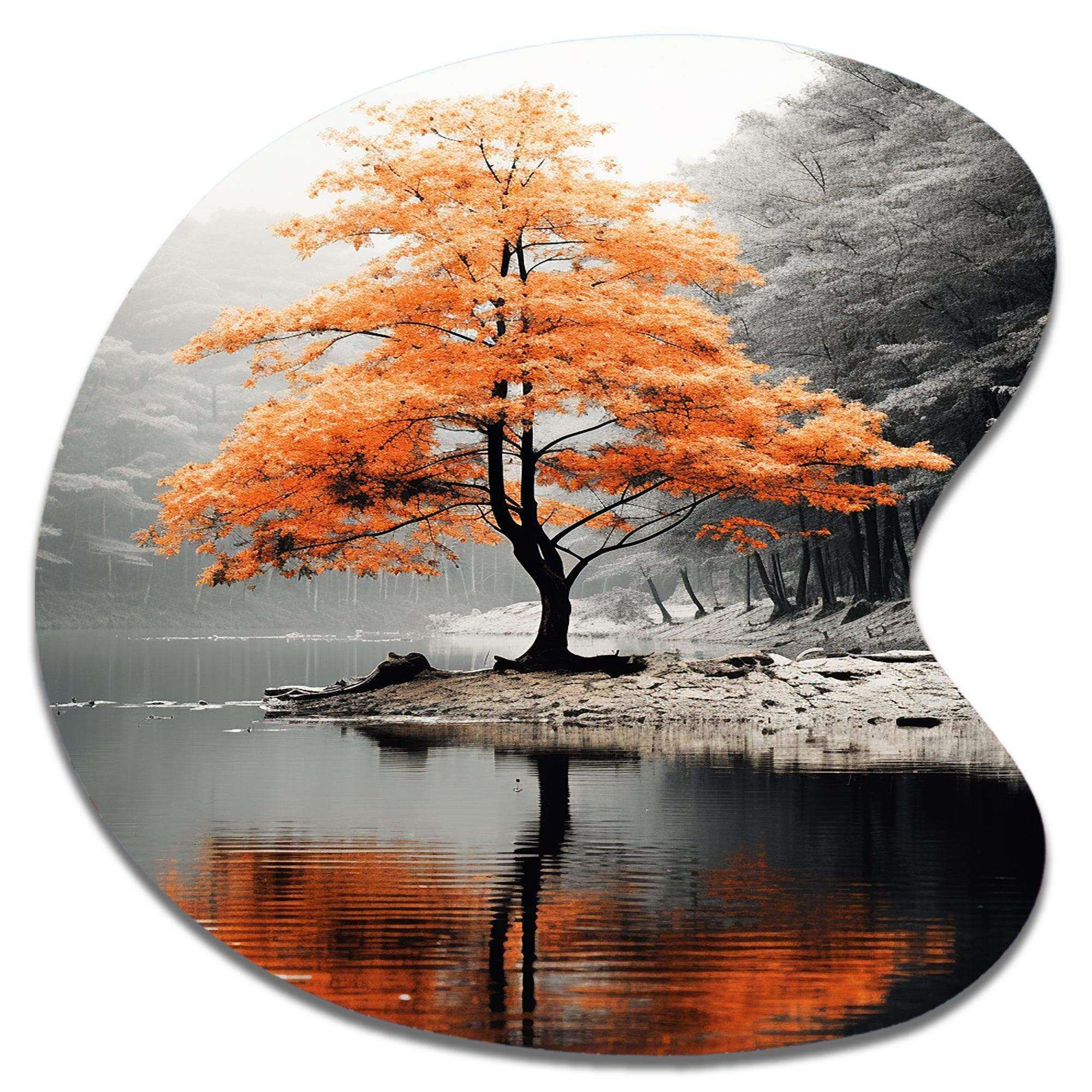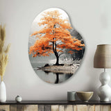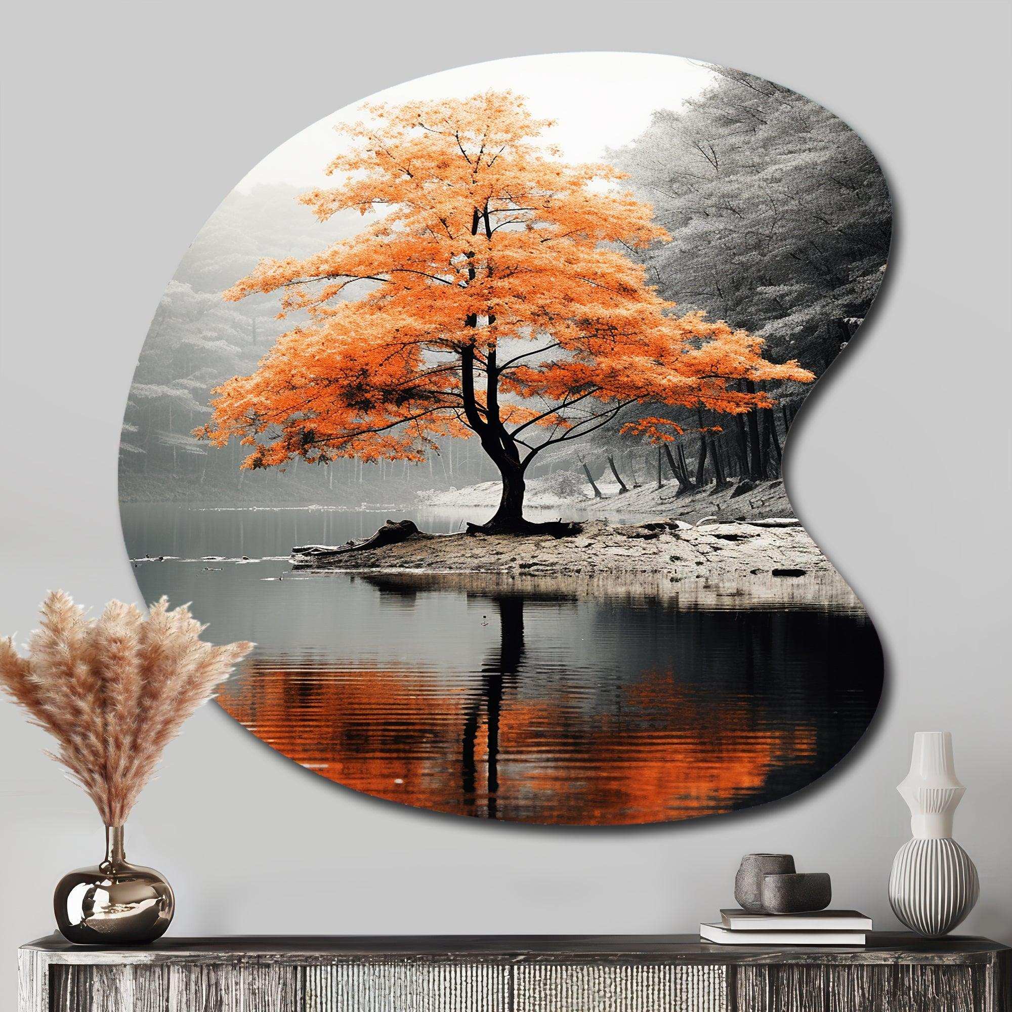 Orange And Grey Forest Autumn Elegance II - Asymmetric Metal Wall Art