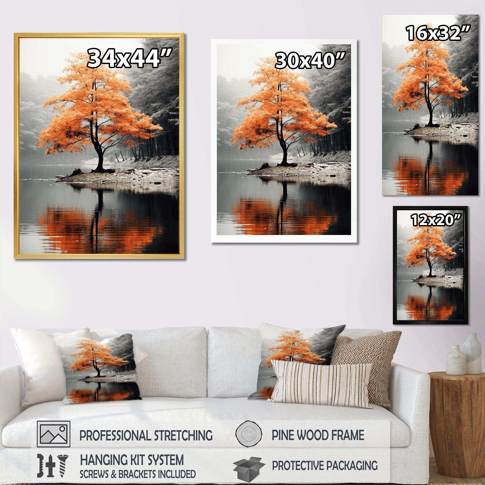 Orange And Grey Forest Autumn Elegance II - Landscapes Canvas Wall Art