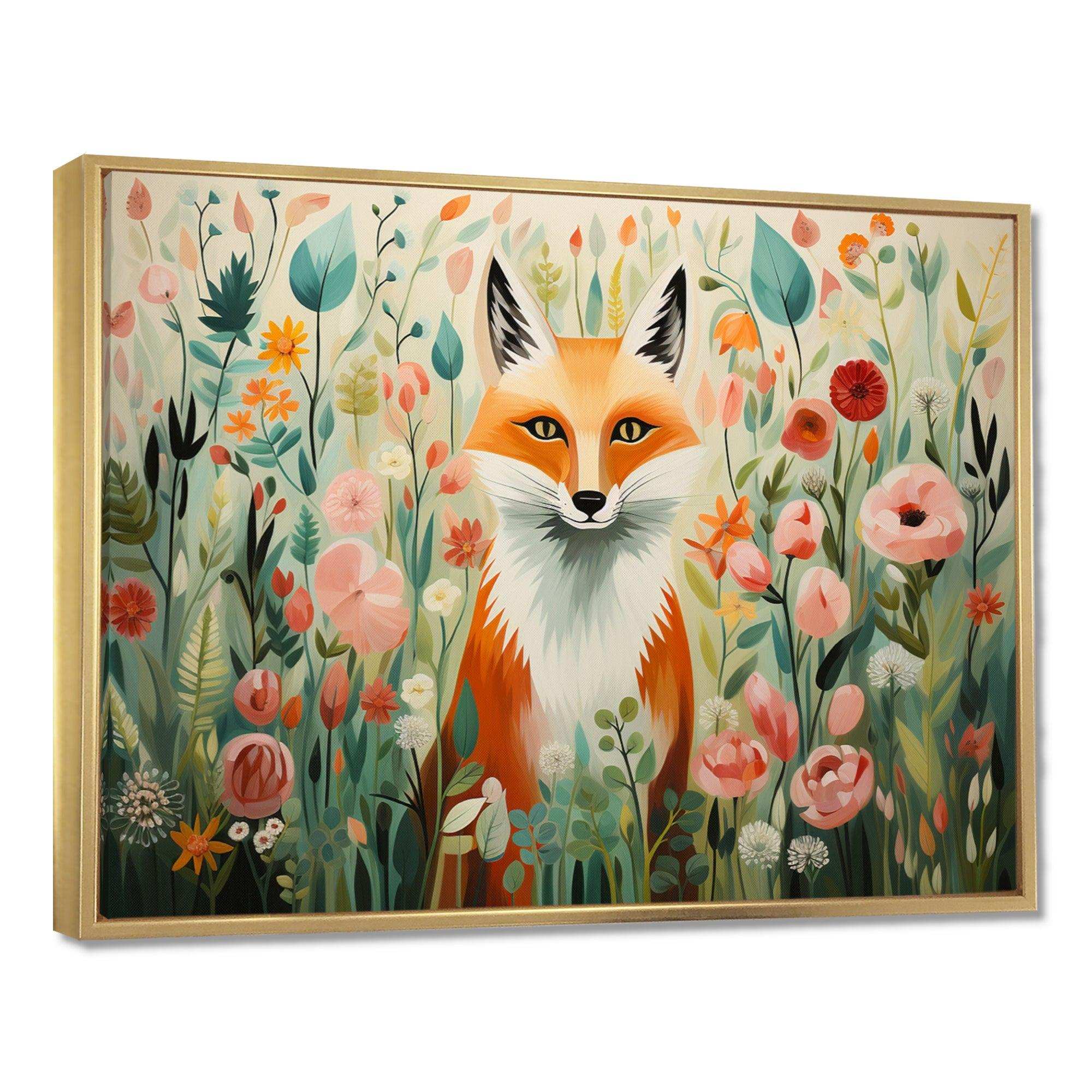 Orange and pink Fox in mattise style IV - Animals Canvas Wall Art