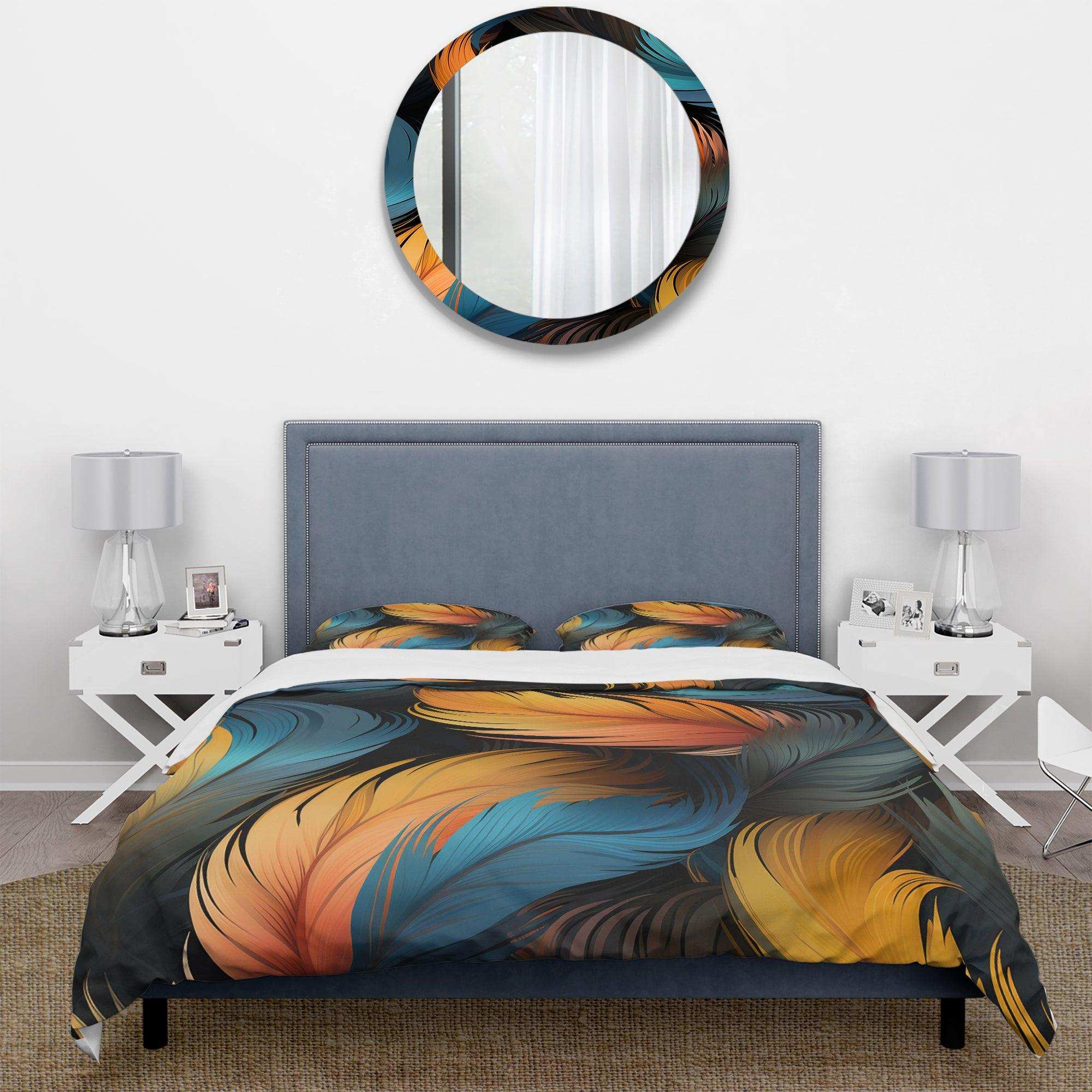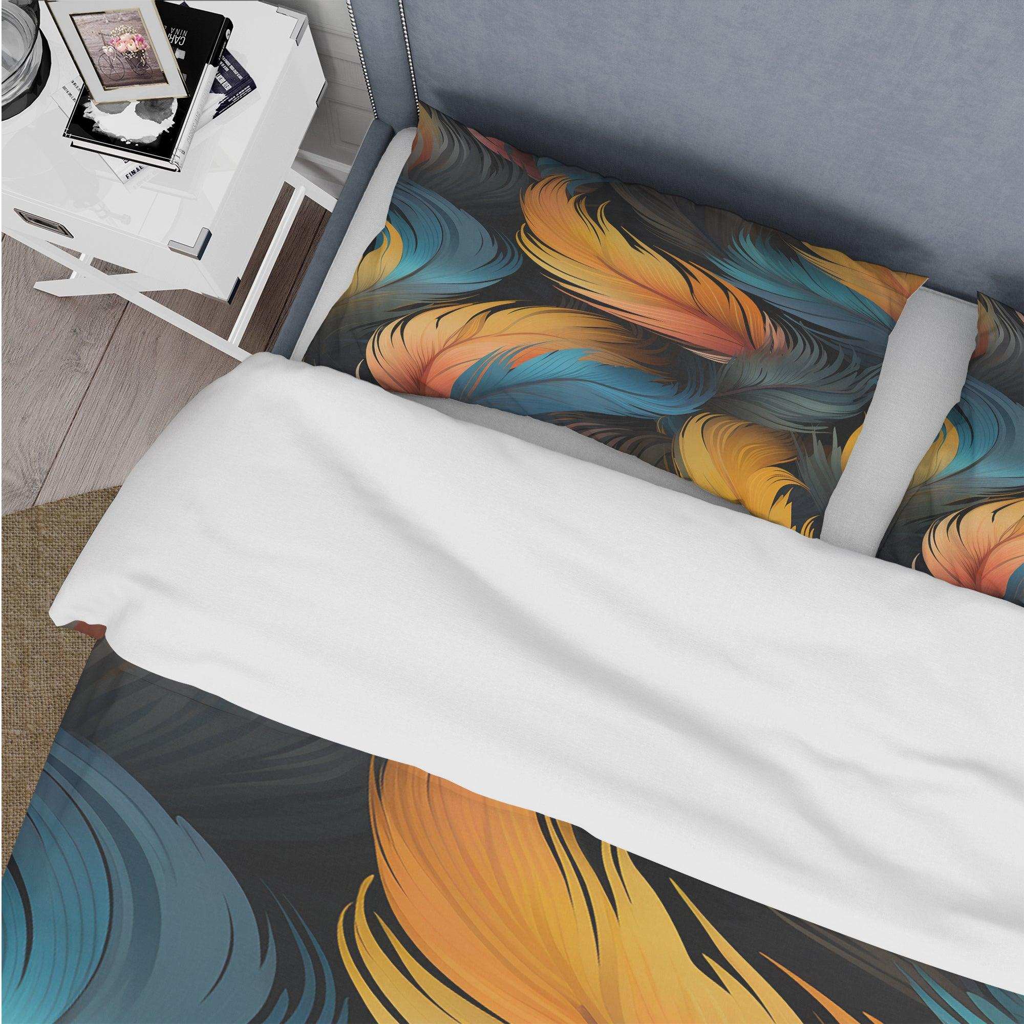 Orange And Teal Feather Avian Elegance - Duvet Cover Set