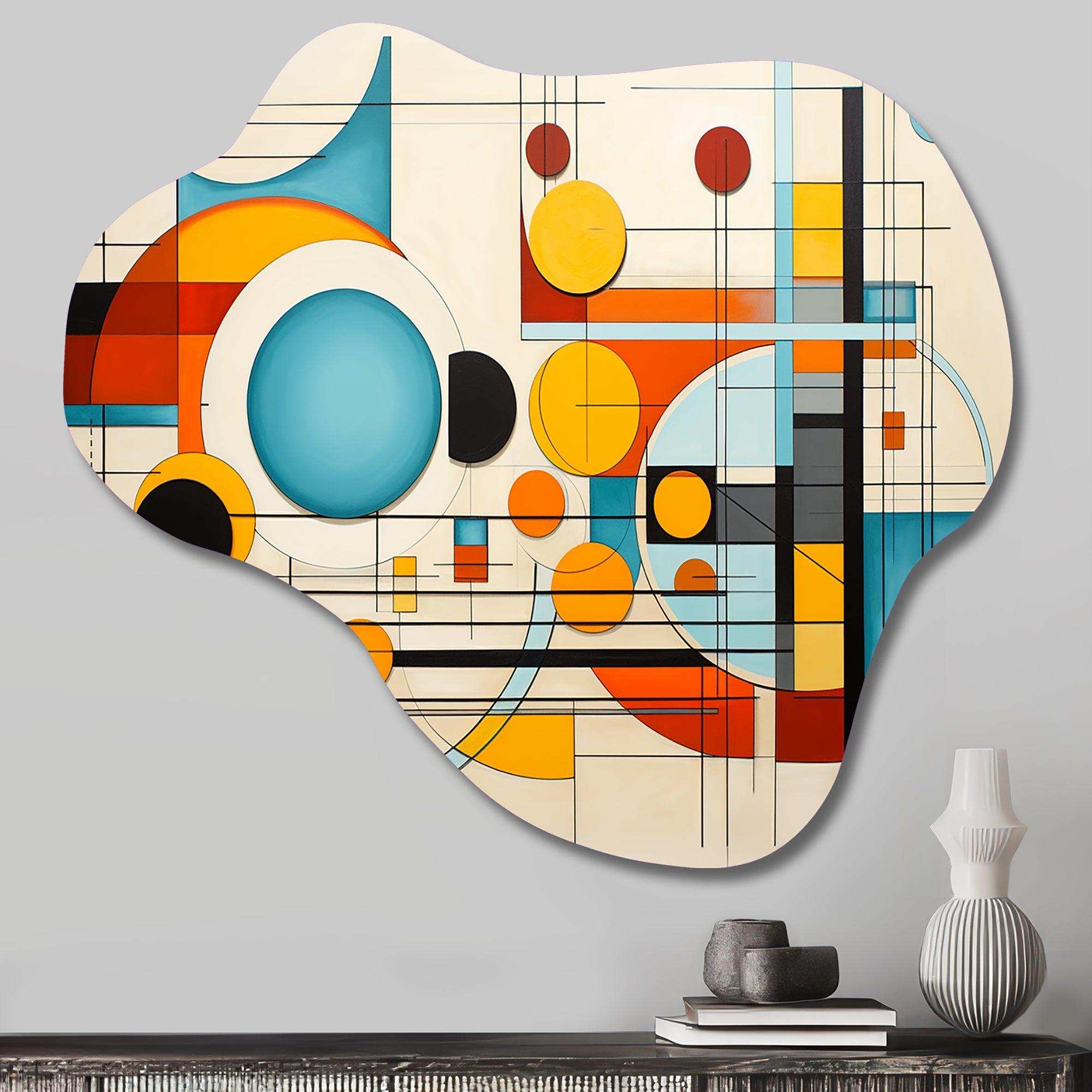 Orange Blue Mid Century Graphic Geometrics - Asymmetric Metal Wall Art