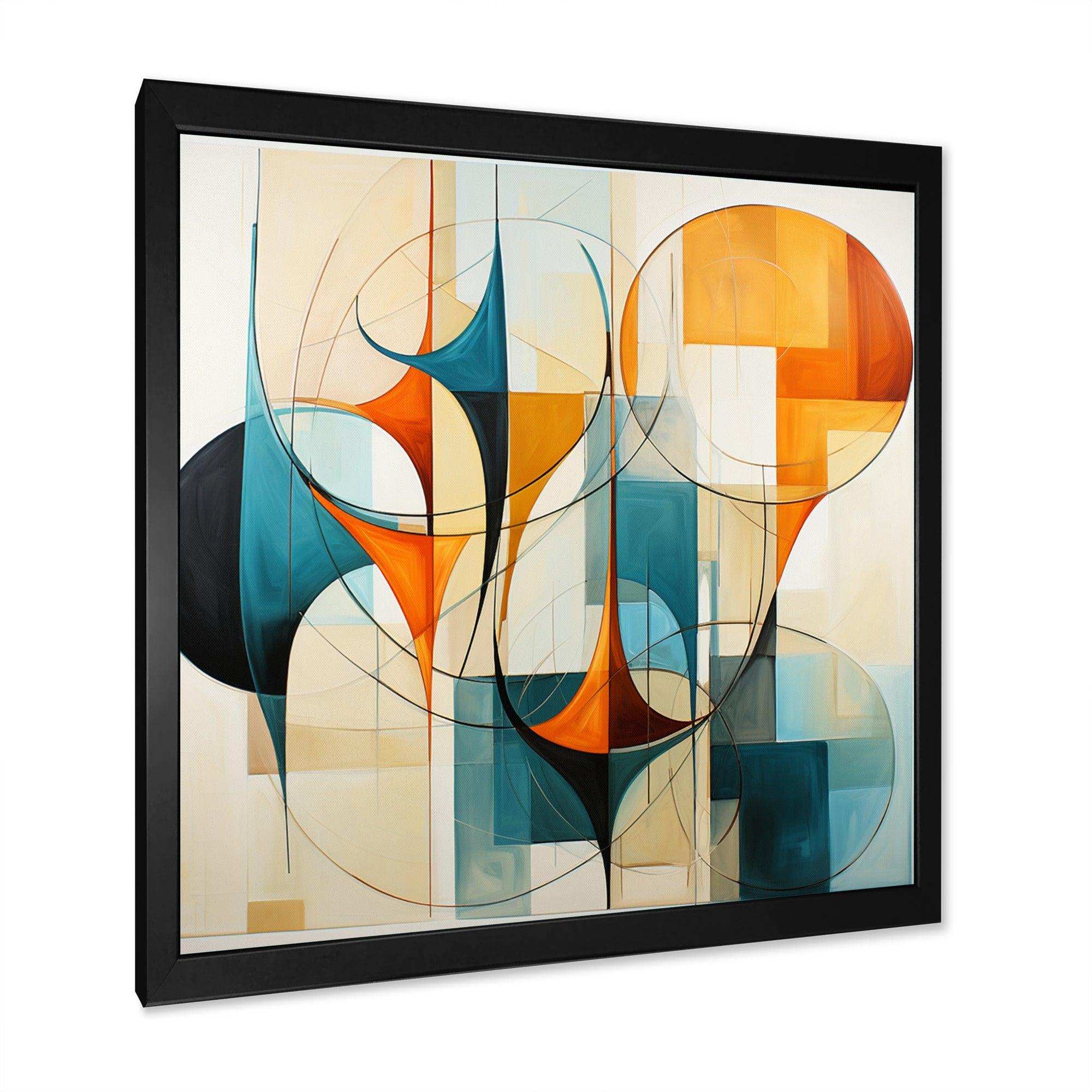Orange Blue Mid Century Harmony In Geometry I - Abstract Canvas Wall Art