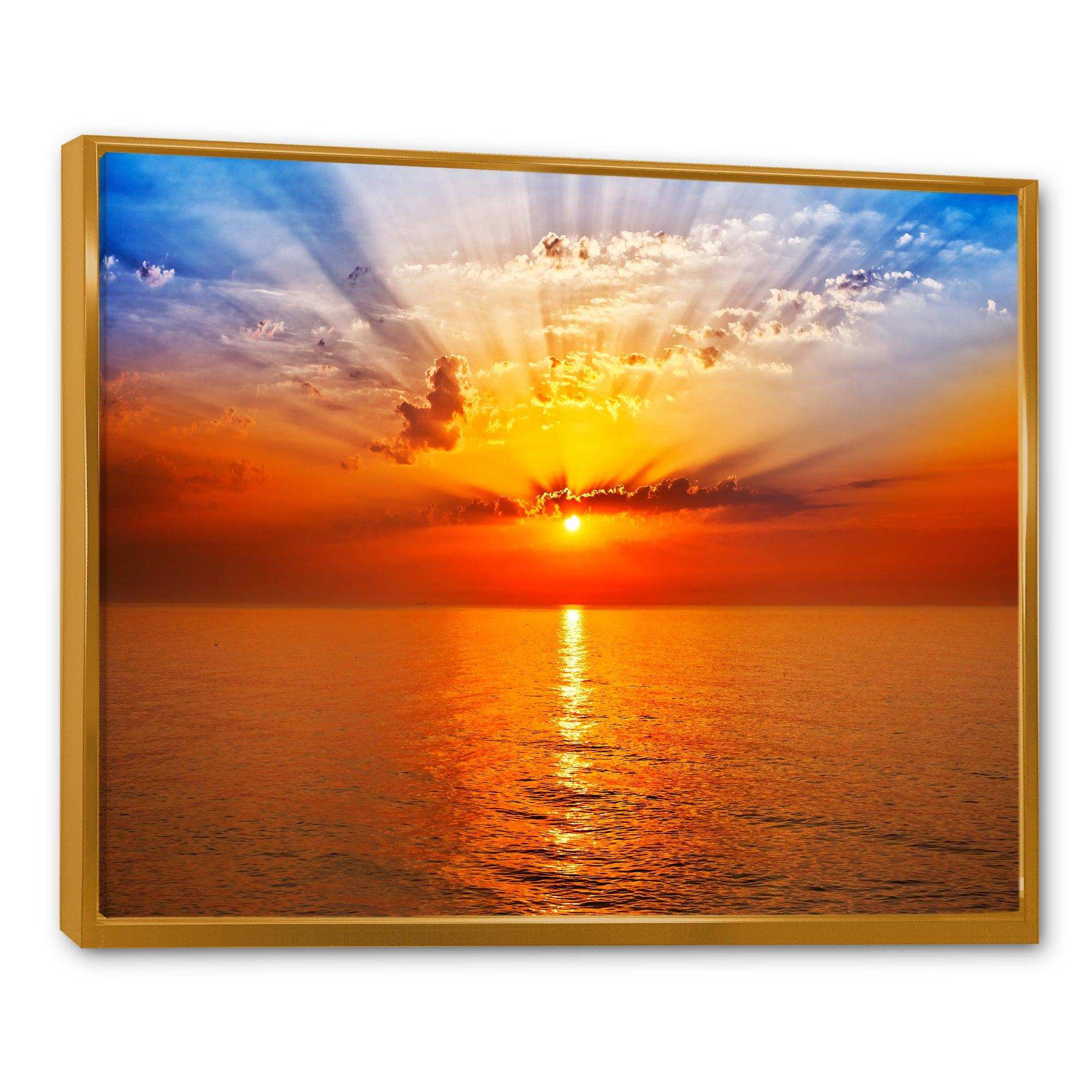 This beautiful Orange Sea Sunrise under Blue Sky Canvas Art is printed using the highest quality fade-resistant ink on canvas. Every one of our fine art giclee canvas prints is printed on premium quality cotton canvas, using the finest quality inks which will not fade over time. Each giclee print is stretched tightly over a 1-inch wood sub frame for small size prints or a 1.5-inch wood subframe for large size prints ensuring the canvas is taught and does not buckle. This canvas art print is gallery-wrapped (the design continues on the sides), giving it a real art gallery feel. All of our canvas prints are carefully packaged with plastic protection, fragile labeling, and sturdy boxes to ensure safe delivery. Every canvas print arrives ready to hang on the wall, with the hanging kits included.