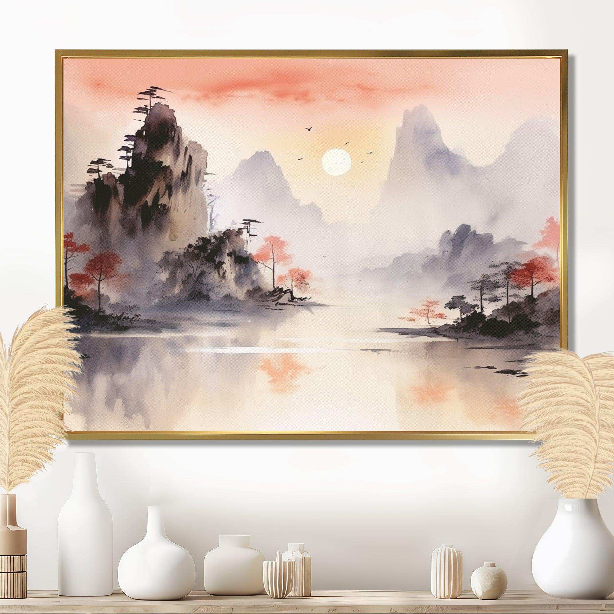 Orange Tranquil Chinese landscape serenity I - Landscapes Canvas Wall Art