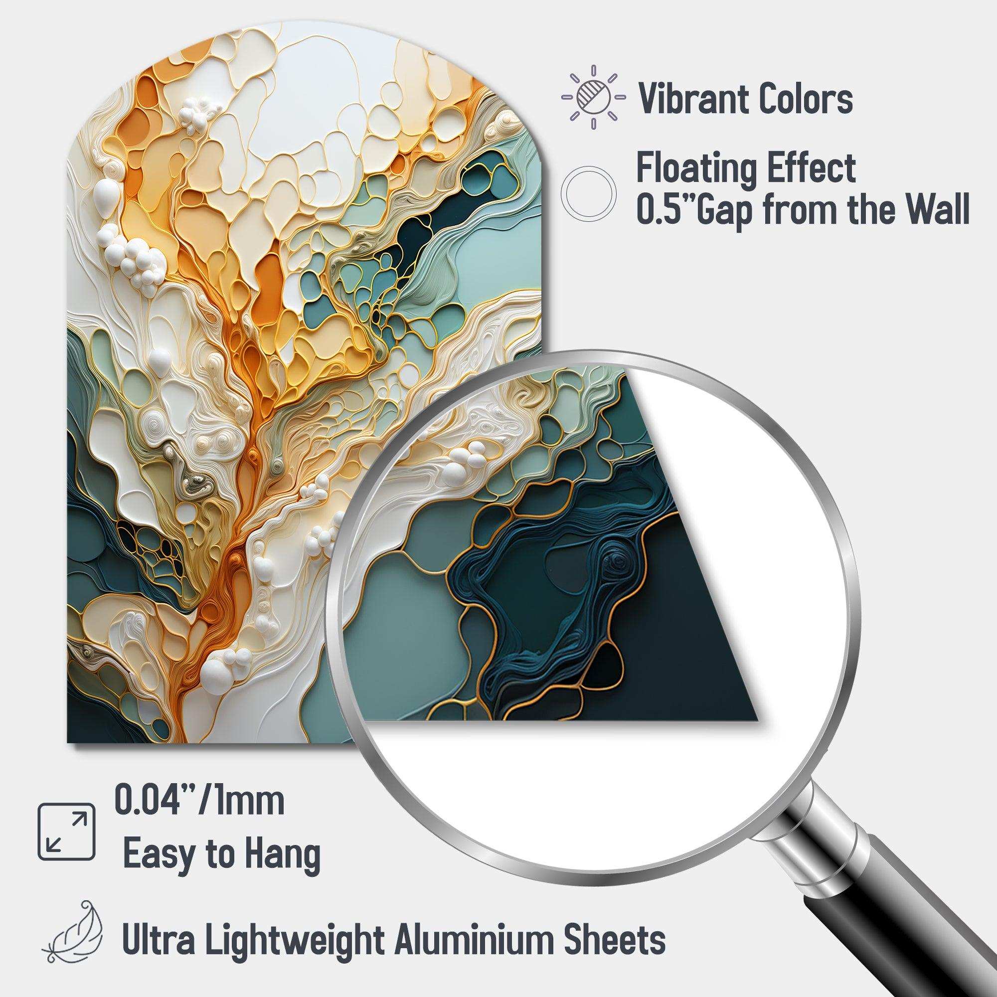 Elevate your space with this Modern asymmetrical metal wall art. Our handcrafted metal wall sculptures combine modern design with artistic elegance, creating a striking focal point in any room. This asymmetric metal wall art features unique, irregular shapes that bring dynamic movement and depth to your walls. Perfect for Abstract decor, these Gold irregular metal wall sculptures are printed on aluminum panel, with extra gloss ensuring long-lasting beauty. Ideal for living rooms, offices decor, or entrance, this statement piece adds a bold, Abstract touch to any decor.