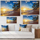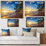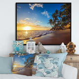 This beautiful Paradise Tropical Island Beach Sunrise Canvas Art is printed using the highest quality fade-resistant ink on canvas. Every one of our fine art giclee canvas prints is printed on premium quality cotton canvas, using the finest quality inks which will not fade over time. Each giclee print is stretched tightly over a 1-inch wood sub frame for small size prints or a 1.5-inch wood subframe for large size prints ensuring the canvas is taught and does not buckle. This canvas art print is gallery-wrapped (the design continues on the sides), giving it a real art gallery feel. All of our canvas prints are carefully packaged with plastic protection, fragile labeling, and sturdy boxes to ensure safe delivery. Every canvas print arrives ready to hang on the wall, with the hanging kits included.