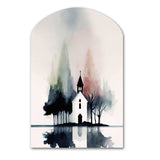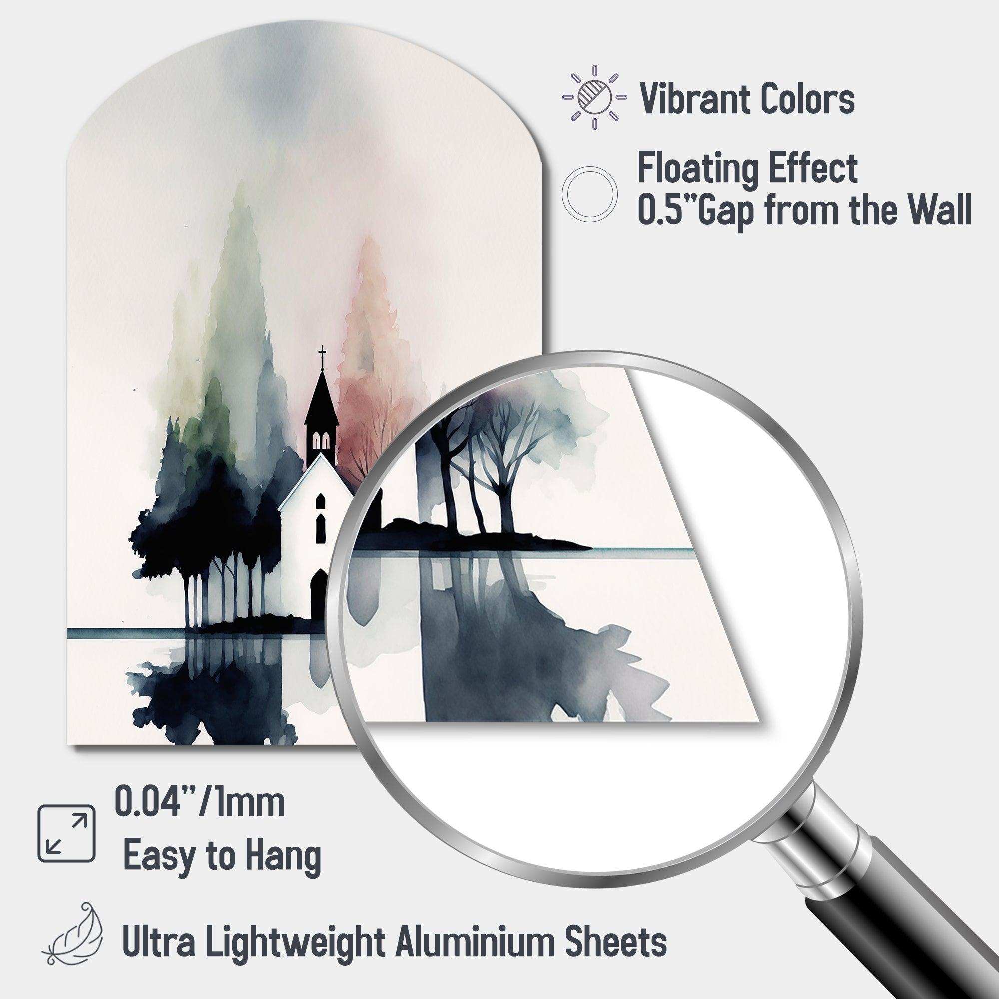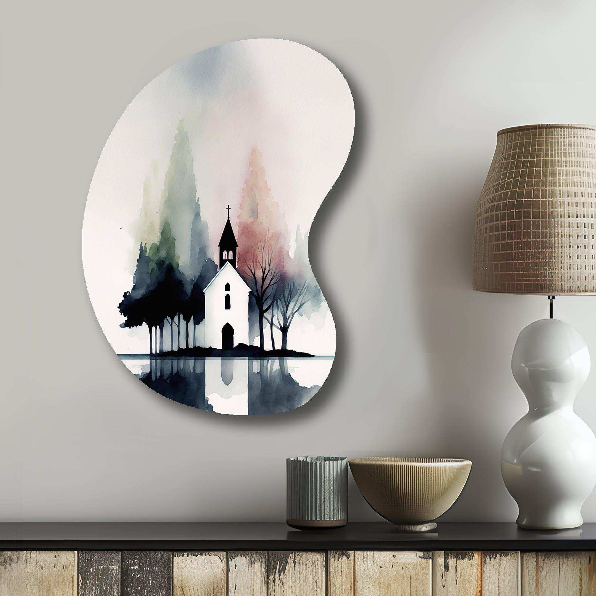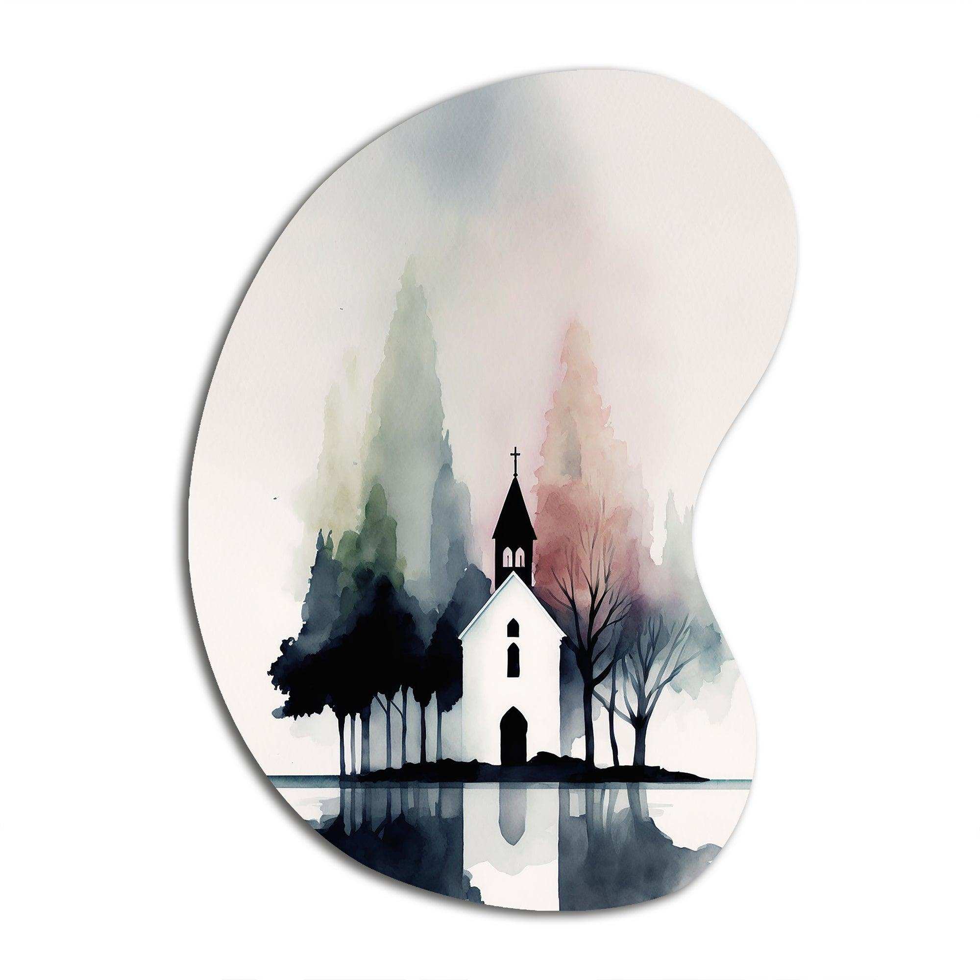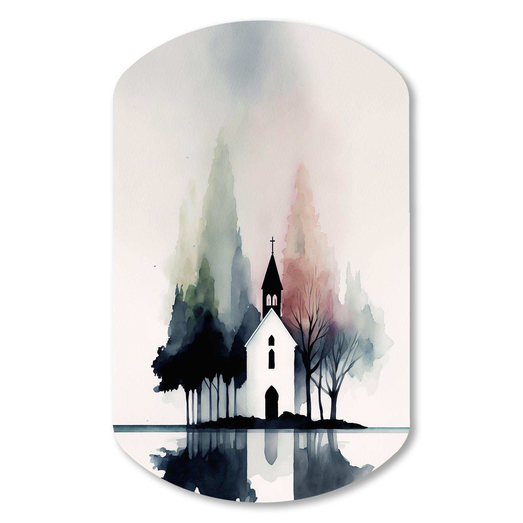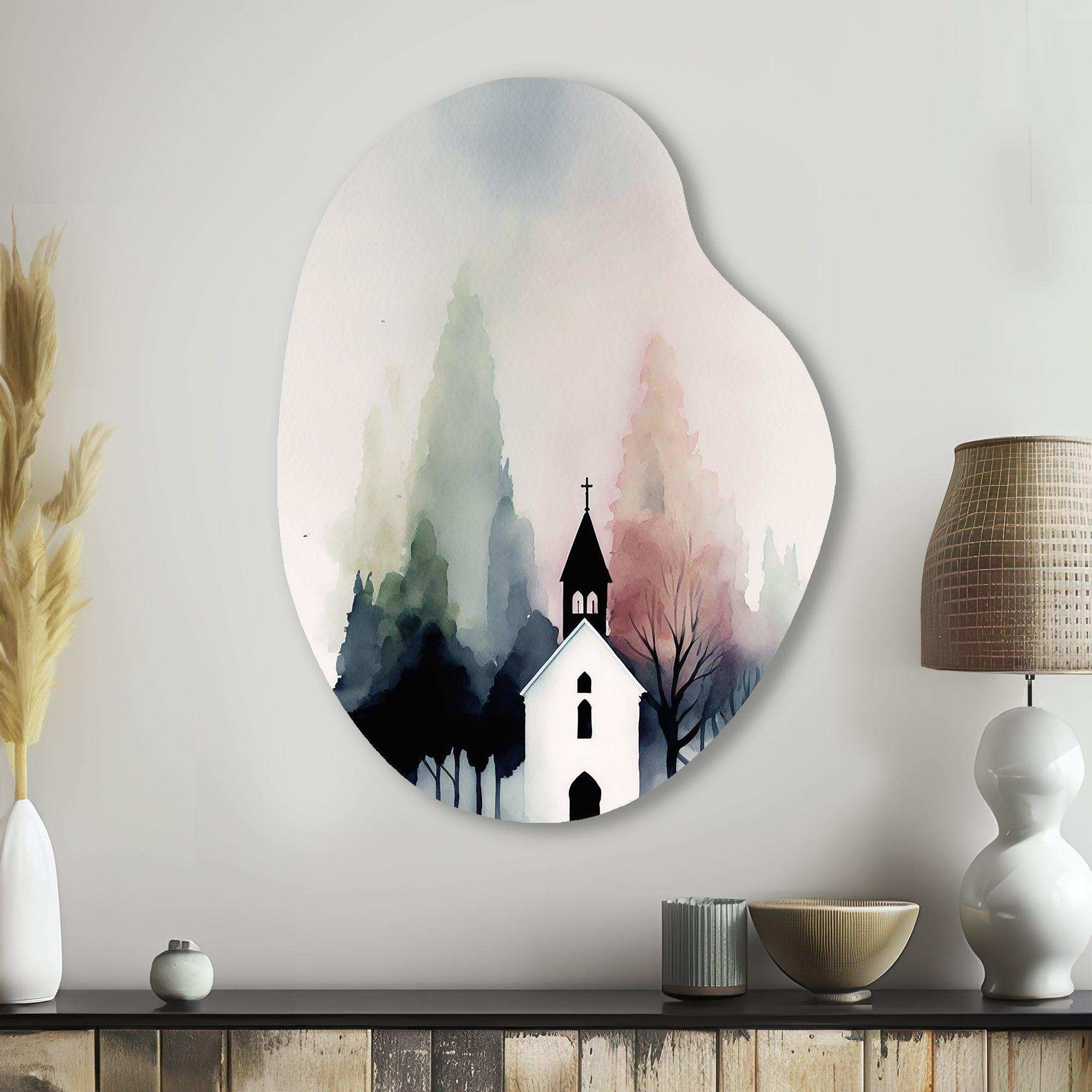 Picturesque Church In The Countryside - Asymmetric Metal Wall Art