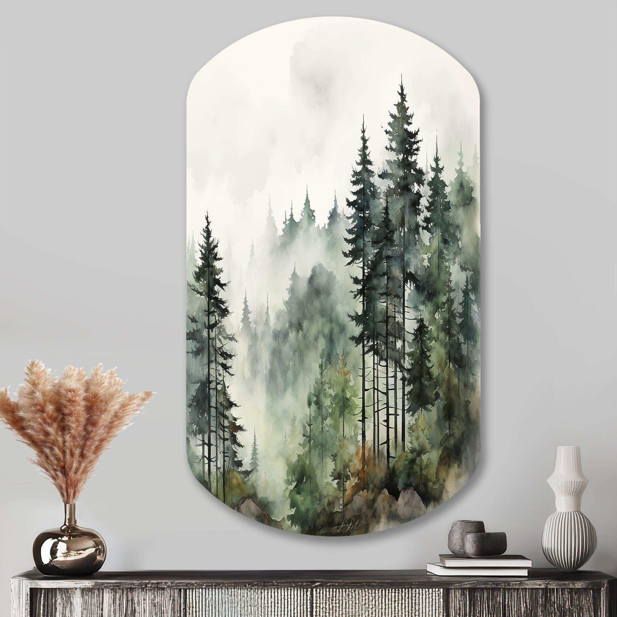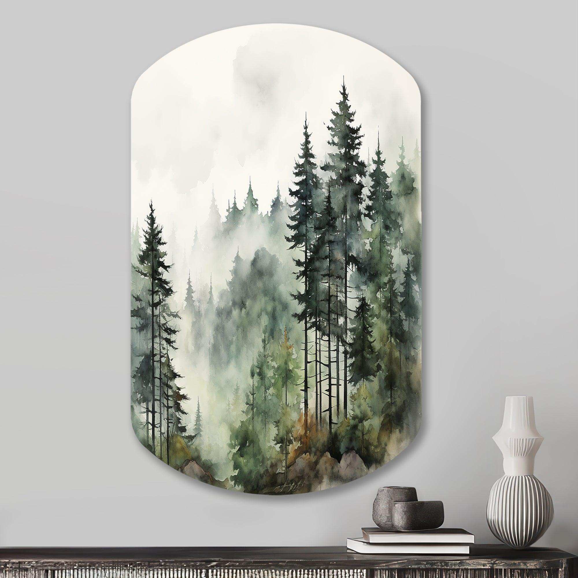 Pine Tree Misty Morning I - Asymmetric Metal Wall Art