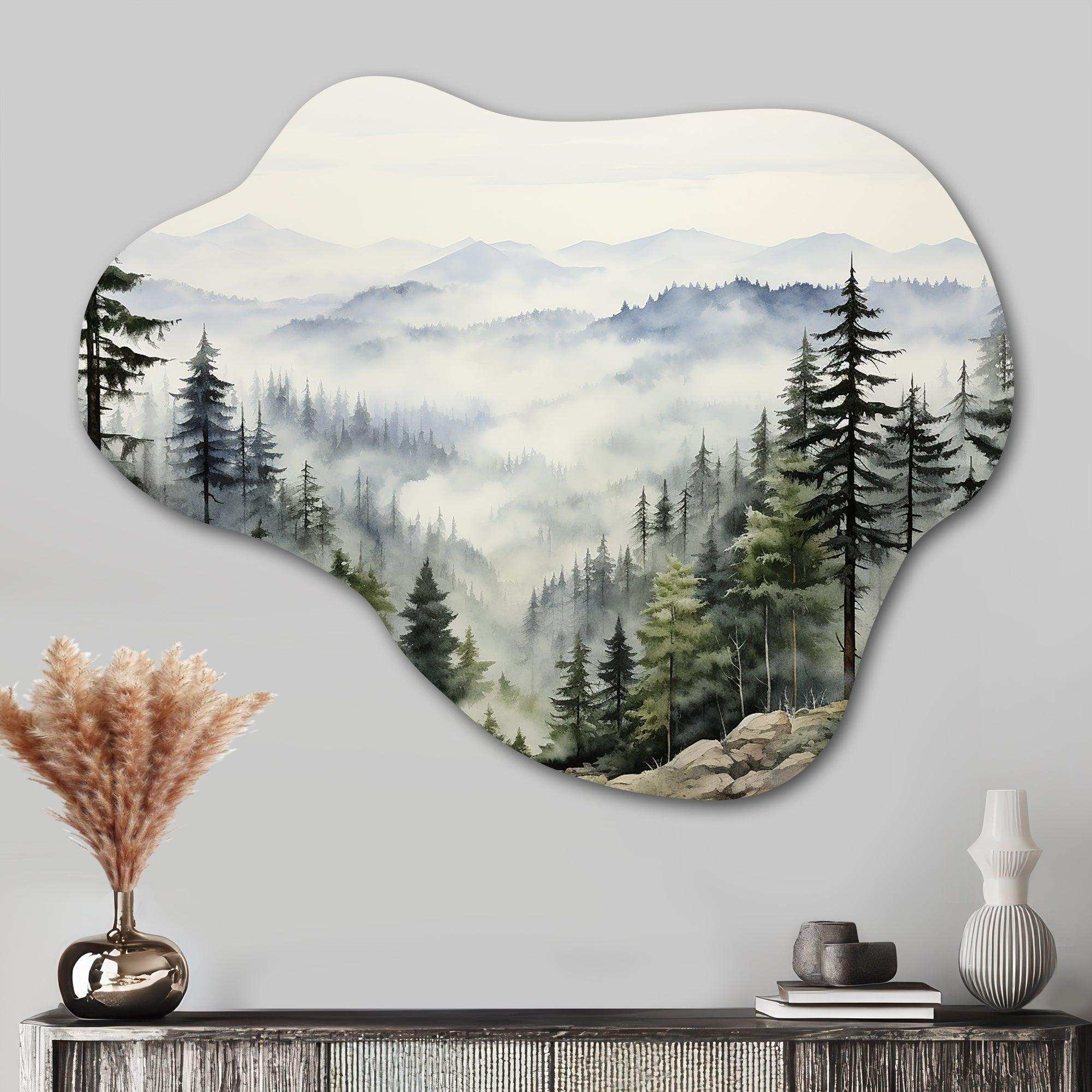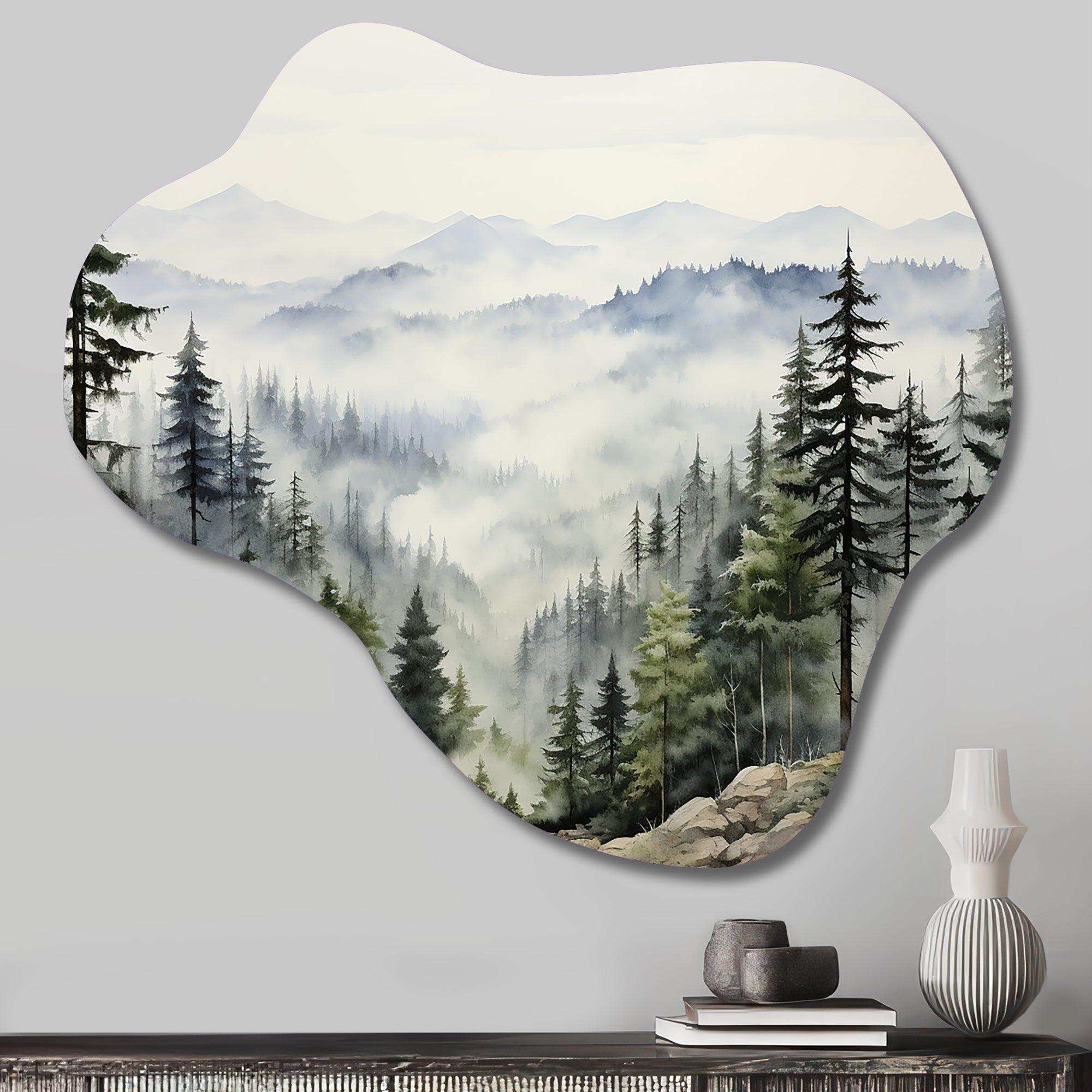 Pine Tree Misty Mountain I - Asymmetric Metal Wall Art