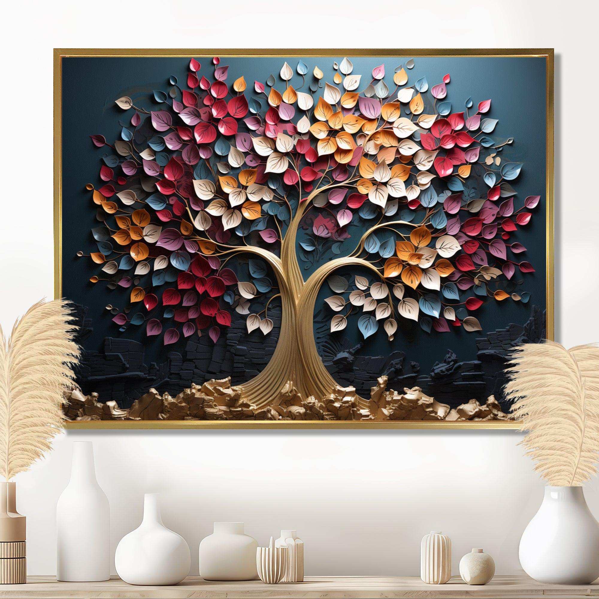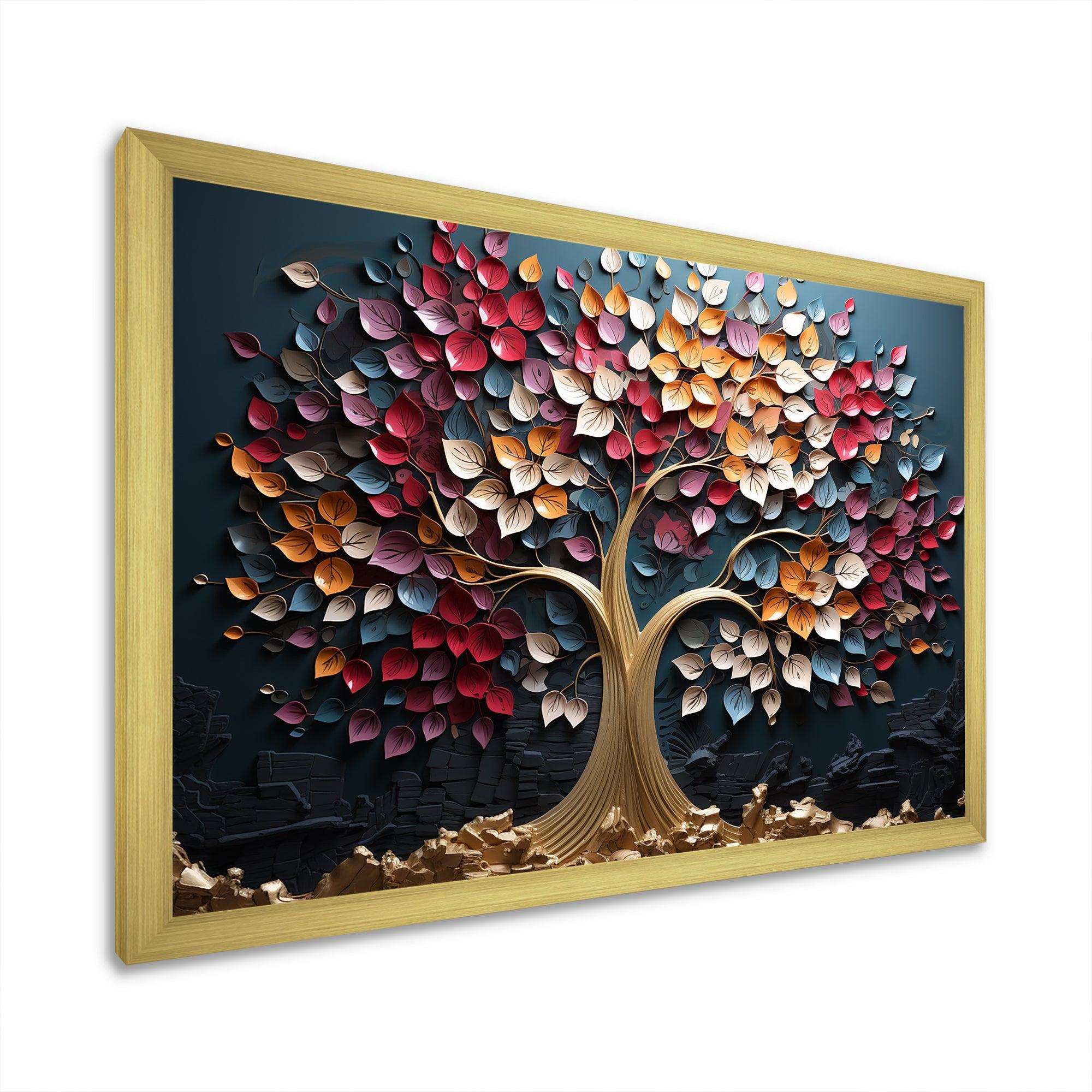 Pink and Blue golden tree on blue tones - Landscapes Canvas Wall Art
