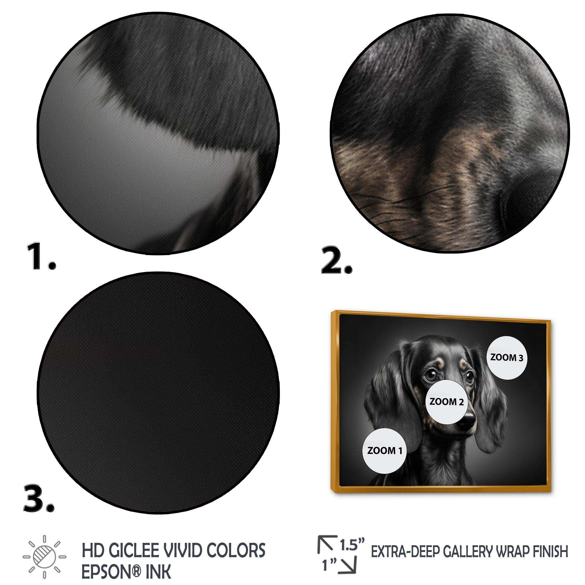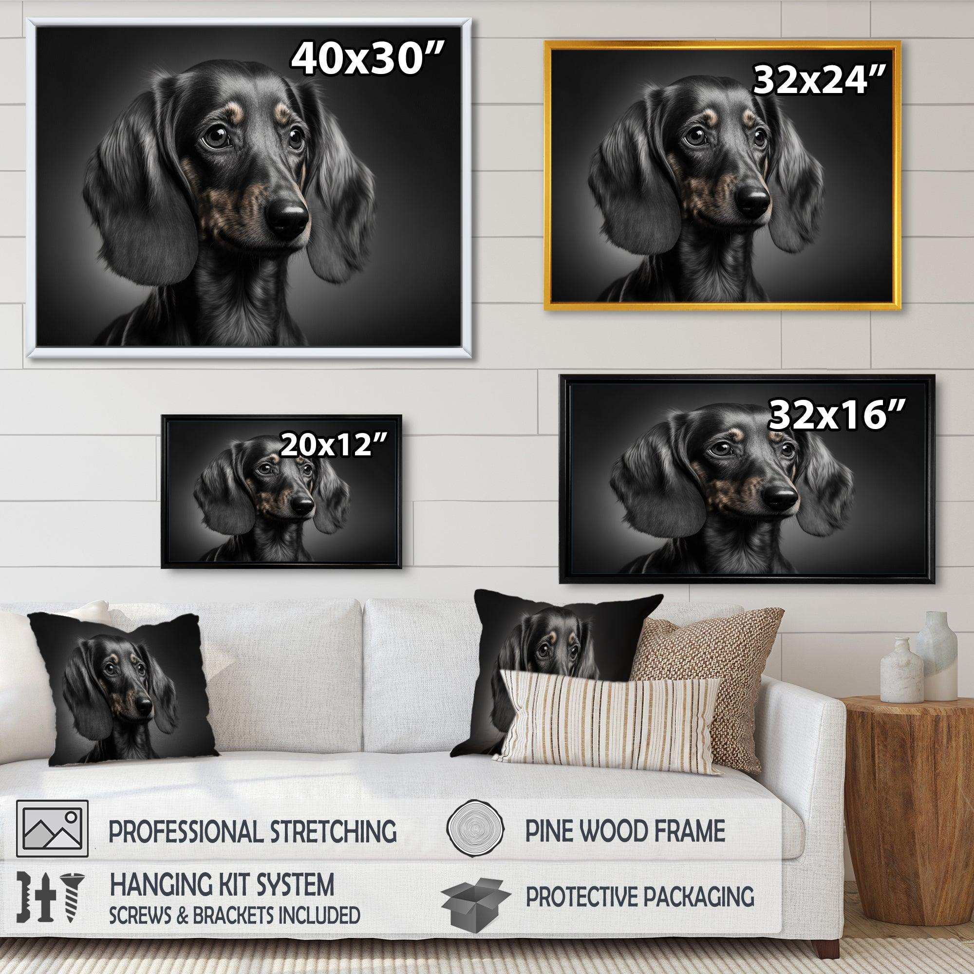 This beautiful Portrait Of A Black Dachshund I Canvas Art is printed using the highest quality fade-resistant ink on canvas. Every one of our fine art giclee canvas prints is printed on premium quality cotton canvas, using the finest quality inks which will not fade over time. Each giclee print is stretched tightly over a 1-inch wood sub frame for small size prints or a 1.5-inch wood subframe for large size prints ensuring the canvas is taught and does not buckle. This canvas art print is gallery-wrapped (the design continues on the sides), giving it a real art gallery feel. All of our canvas prints are carefully packaged with plastic protection, fragile labeling, and sturdy boxes to ensure safe delivery. Every canvas print arrives ready to hang on the wall, with the hanging kits included.