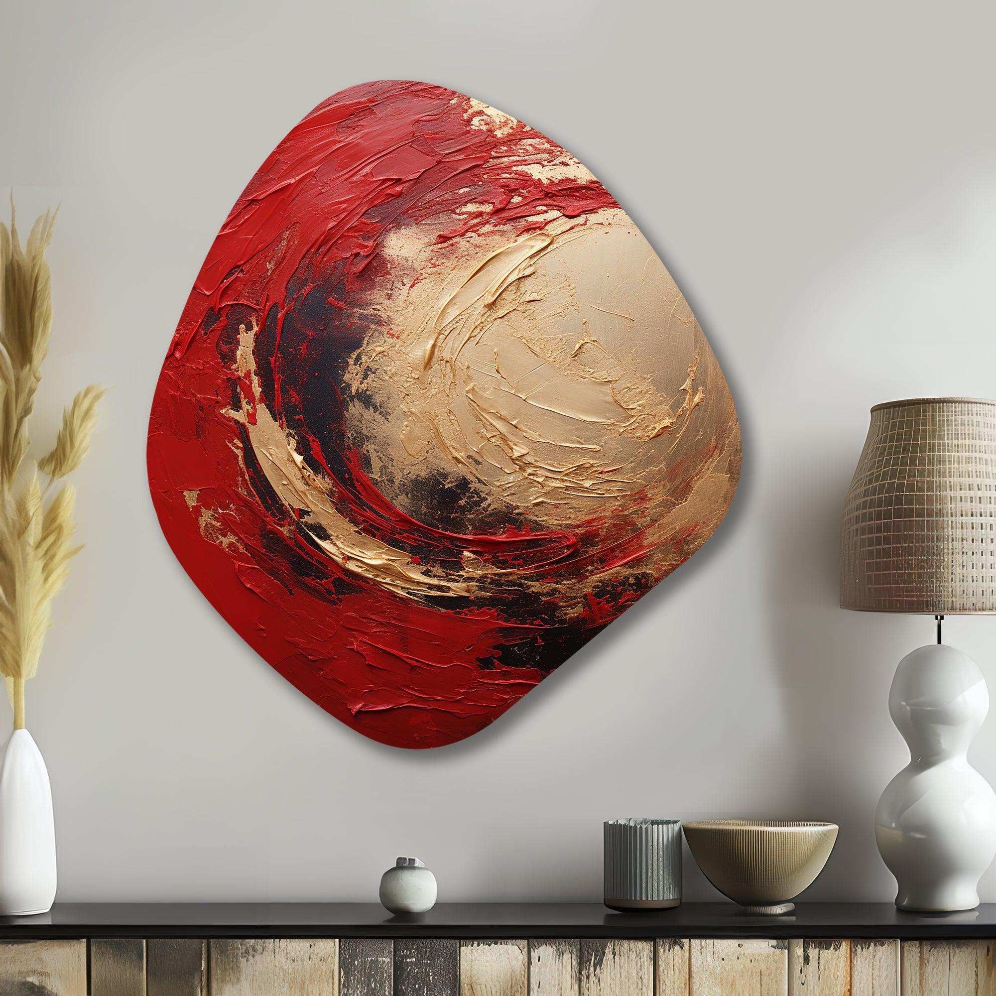 Red Gold Fusion Spiral I - Asymmetric Metal Wall Art