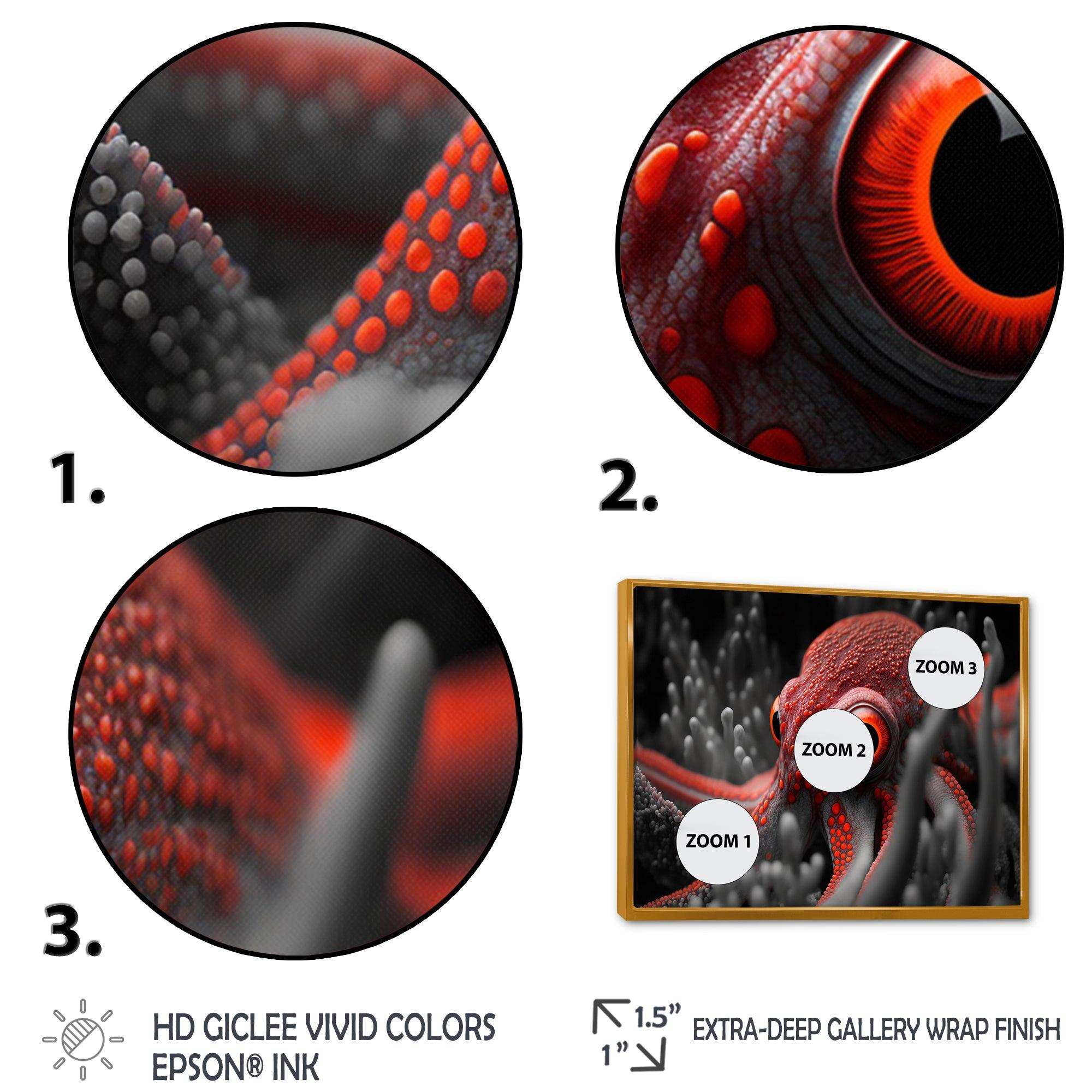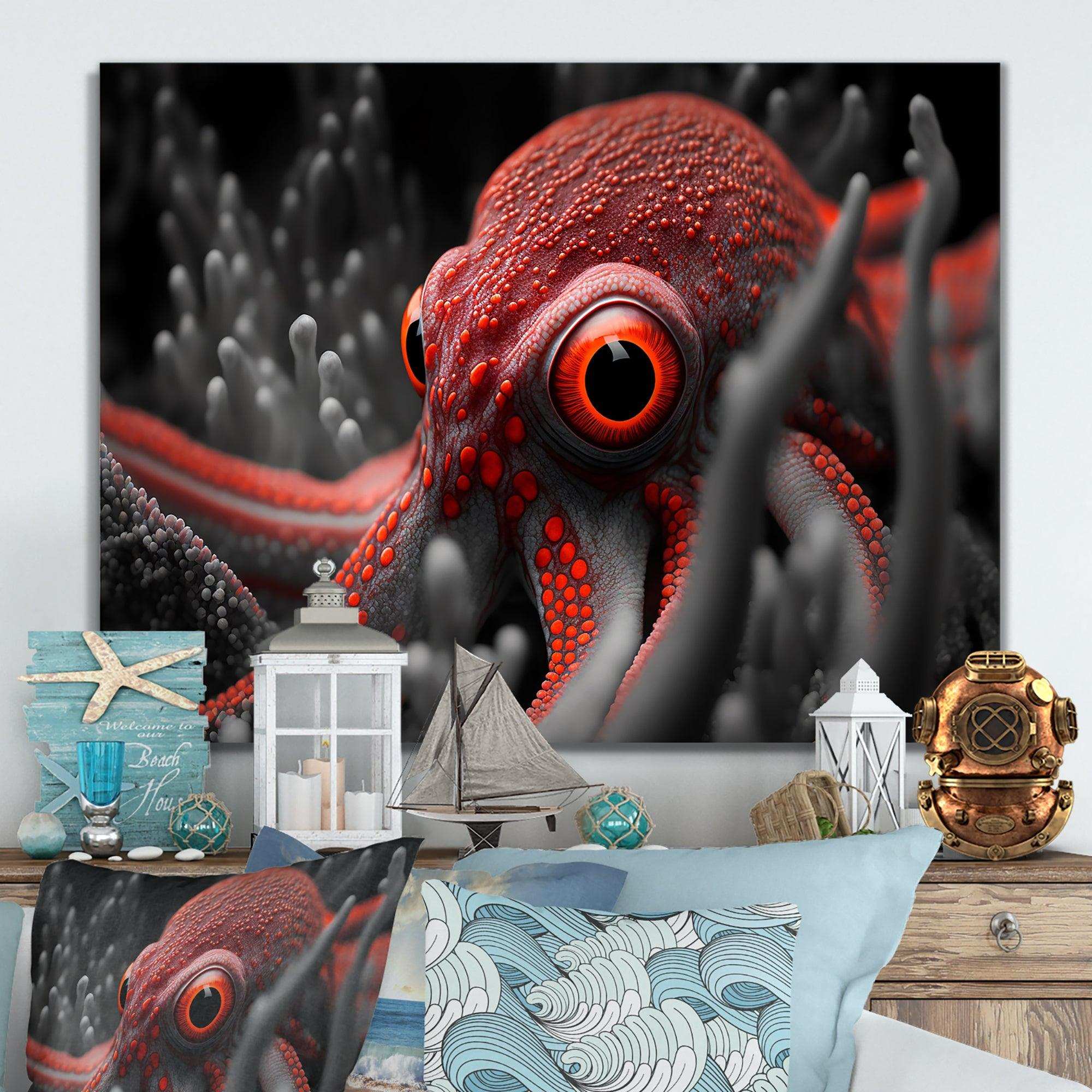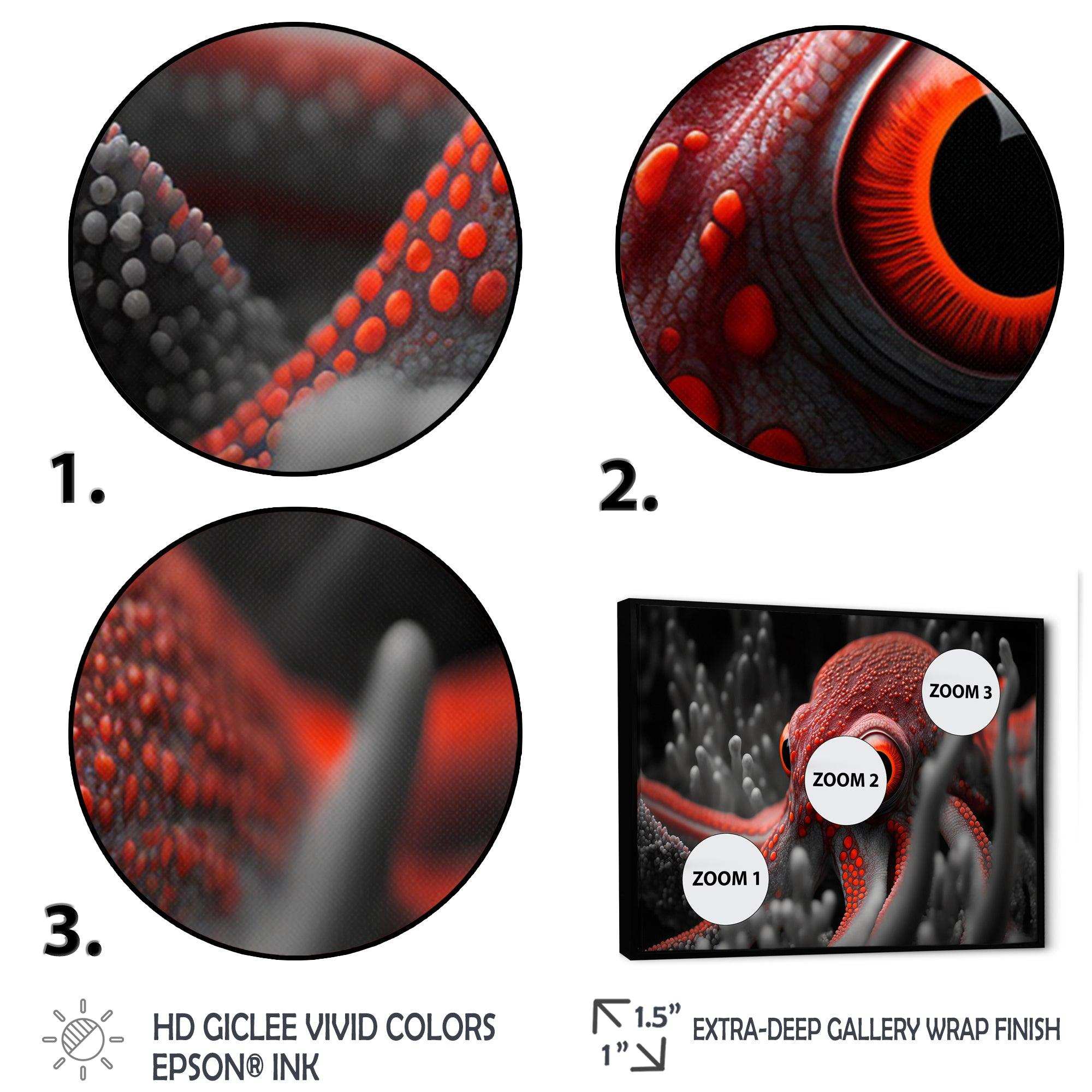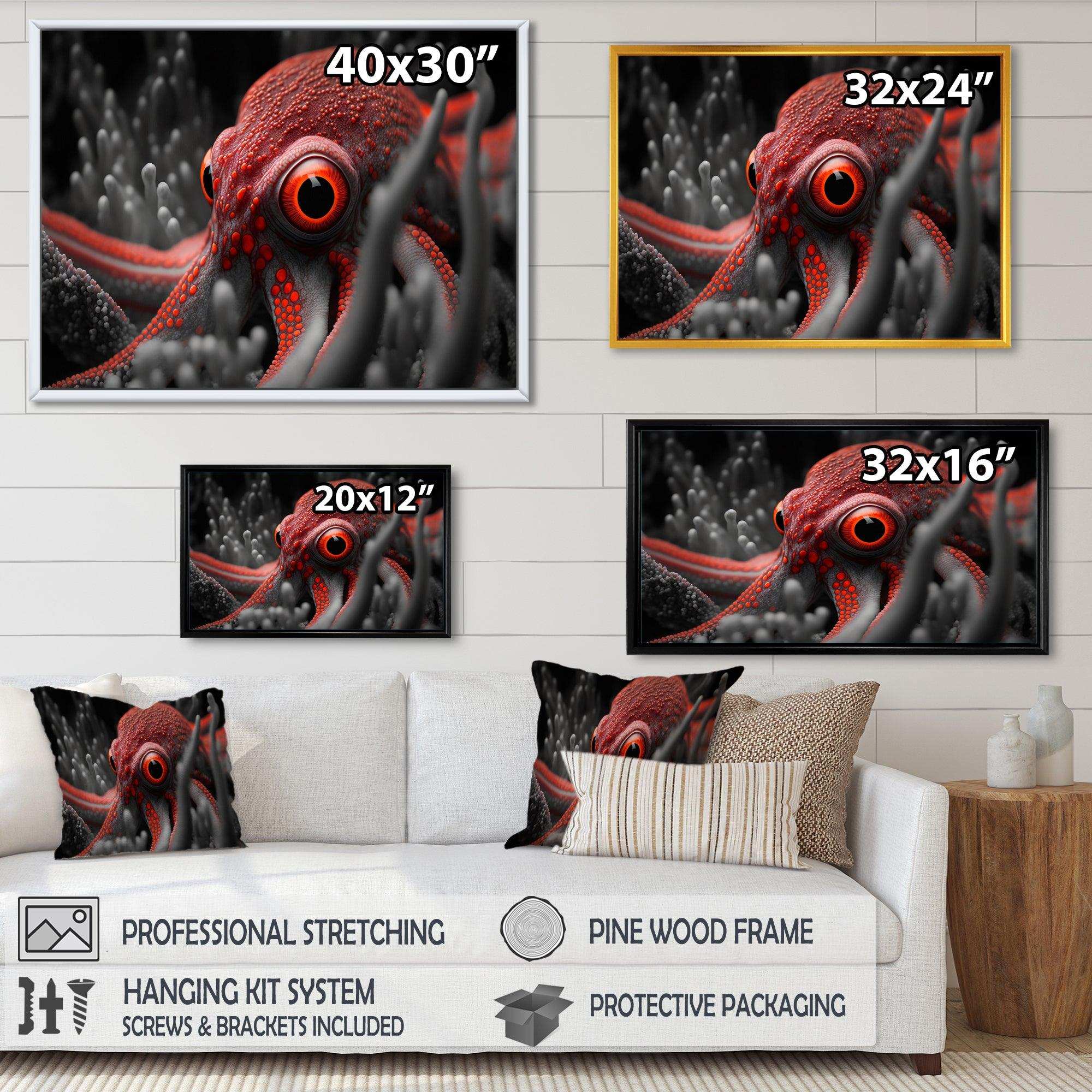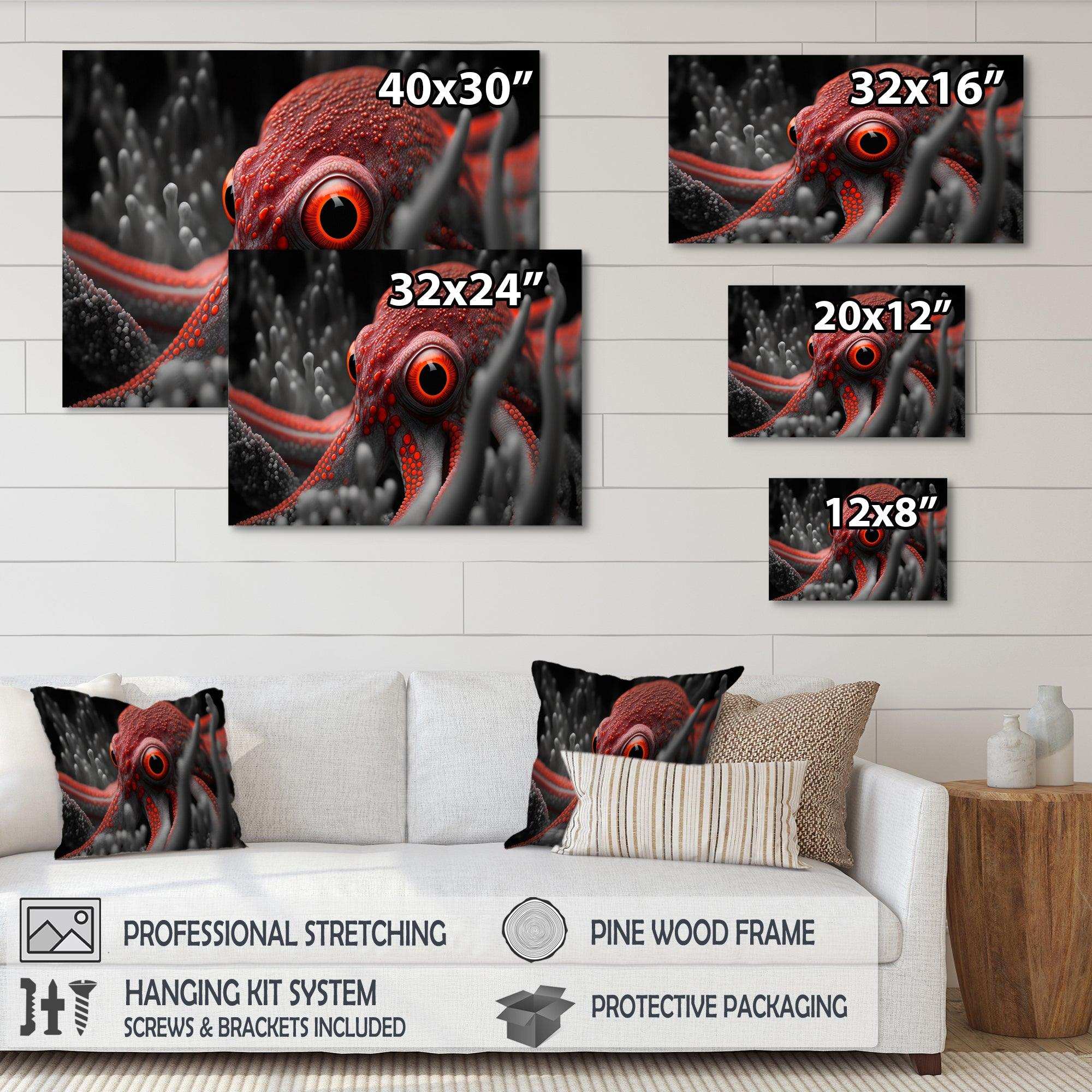 This beautiful Red Octopus On The Ocean Floor III Canvas Art is printed using the highest quality fade-resistant ink on canvas. Every one of our fine art giclee canvas prints is printed on premium quality cotton canvas, using the finest quality inks which will not fade over time. Each giclee print is stretched tightly over a 1-inch wood sub frame for small size prints or a 1.5-inch wood subframe for large size prints ensuring the canvas is taught and does not buckle. This canvas art print is gallery-wrapped (the design continues on the sides), giving it a real art gallery feel. All of our canvas prints are carefully packaged with plastic protection, fragile labeling, and sturdy boxes to ensure safe delivery. Every canvas print arrives ready to hang on the wall, with the hanging kits included.