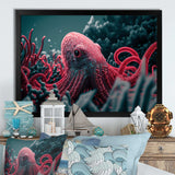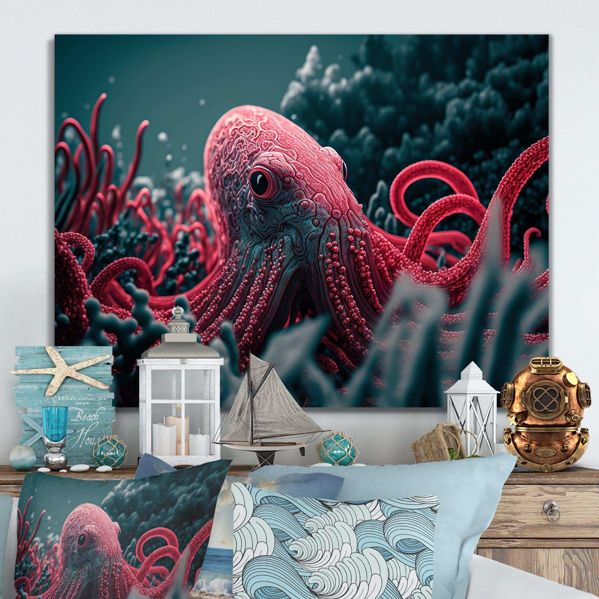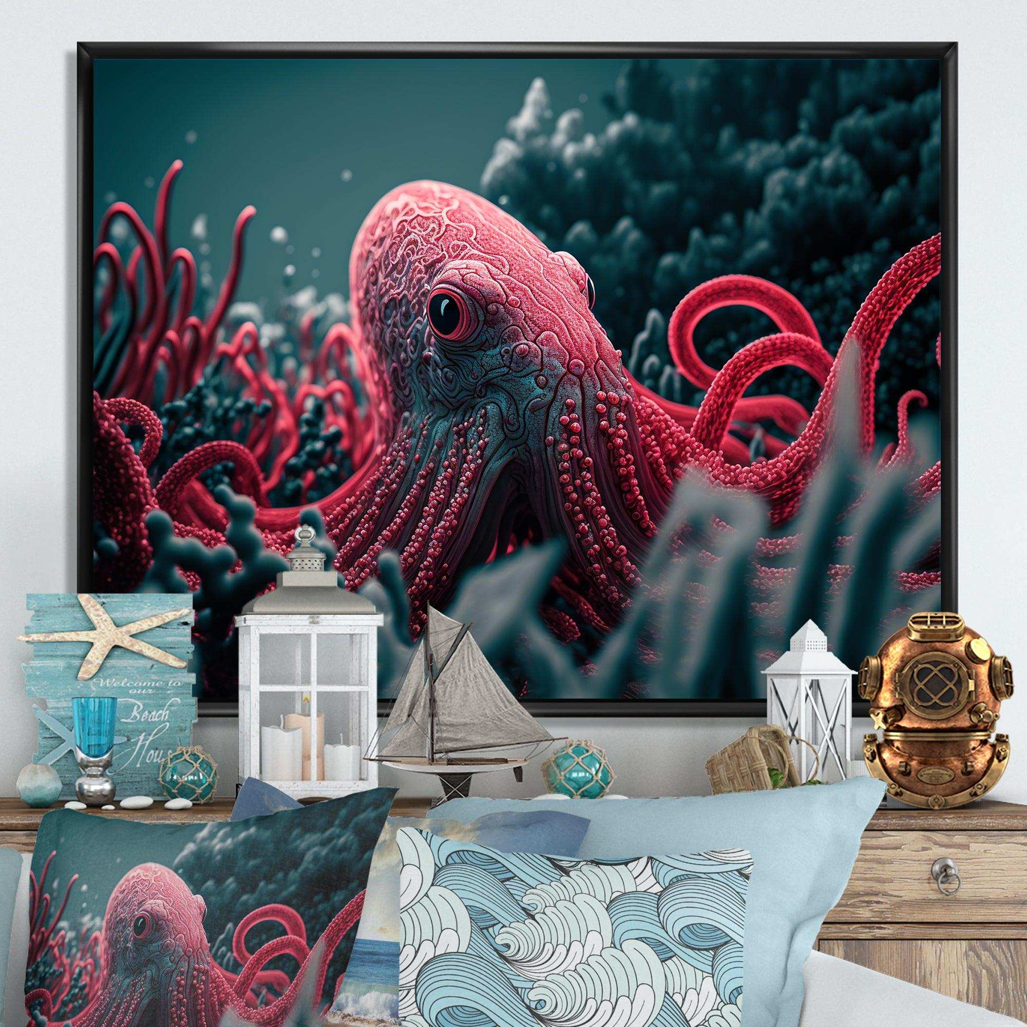 This beautiful Red Octopus On The Ocean Floor V Canvas Art is printed using the highest quality fade-resistant ink on canvas. Every one of our fine art giclee canvas prints is printed on premium quality cotton canvas, using the finest quality inks which will not fade over time. Each giclee print is stretched tightly over a 1-inch wood sub frame for small size prints or a 1.5-inch wood subframe for large size prints ensuring the canvas is taught and does not buckle. This canvas art print is gallery-wrapped (the design continues on the sides), giving it a real art gallery feel. All of our canvas prints are carefully packaged with plastic protection, fragile labeling, and sturdy boxes to ensure safe delivery. Every canvas print arrives ready to hang on the wall, with the hanging kits included.