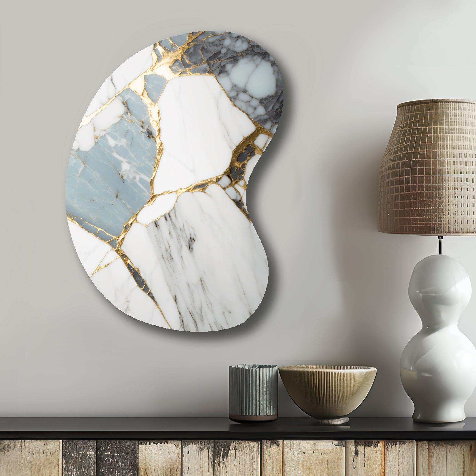 Abstract Geode Gold And White Marble I - Asymmetric Metal Wall Art
