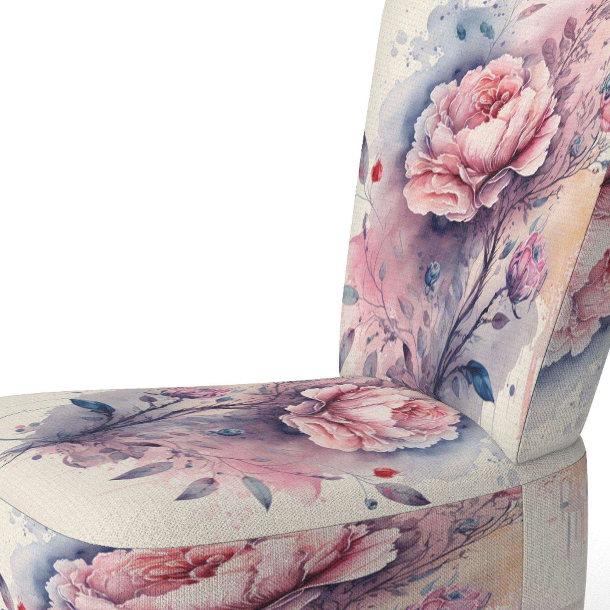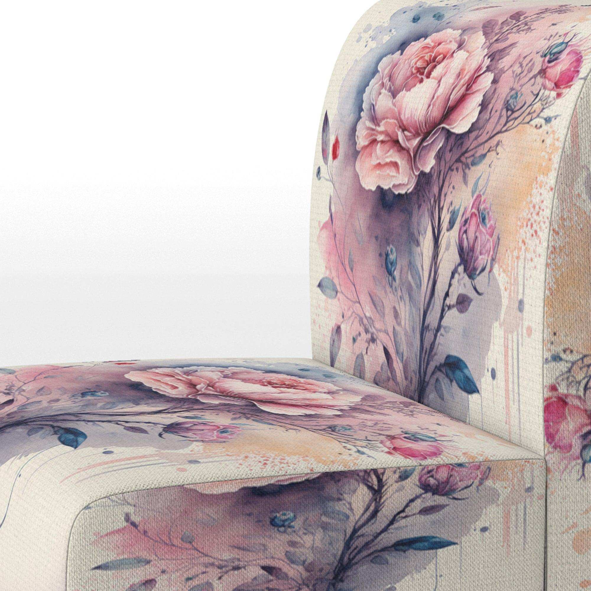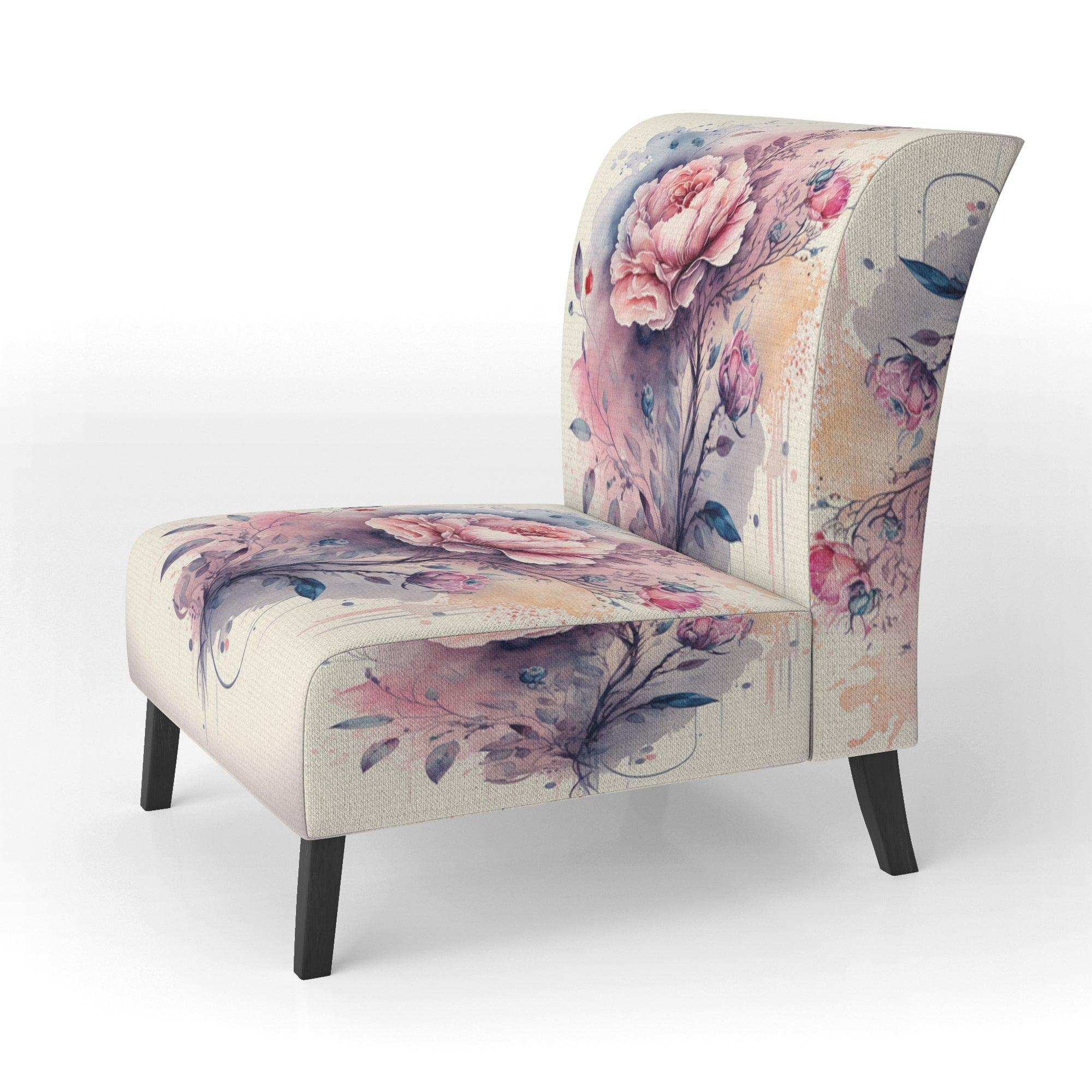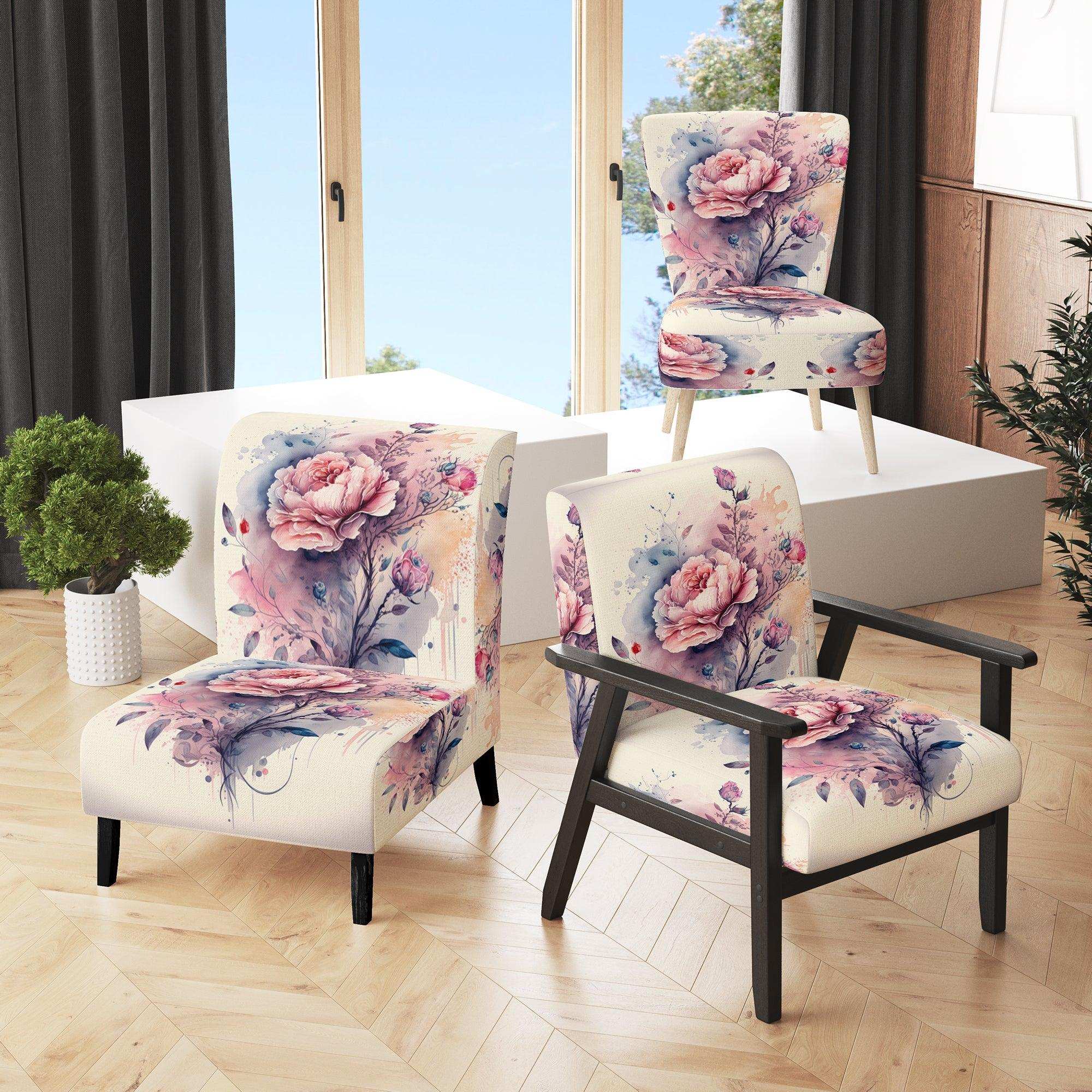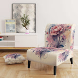 Pink And Purple Rose Design- Upholstered Accent Chair