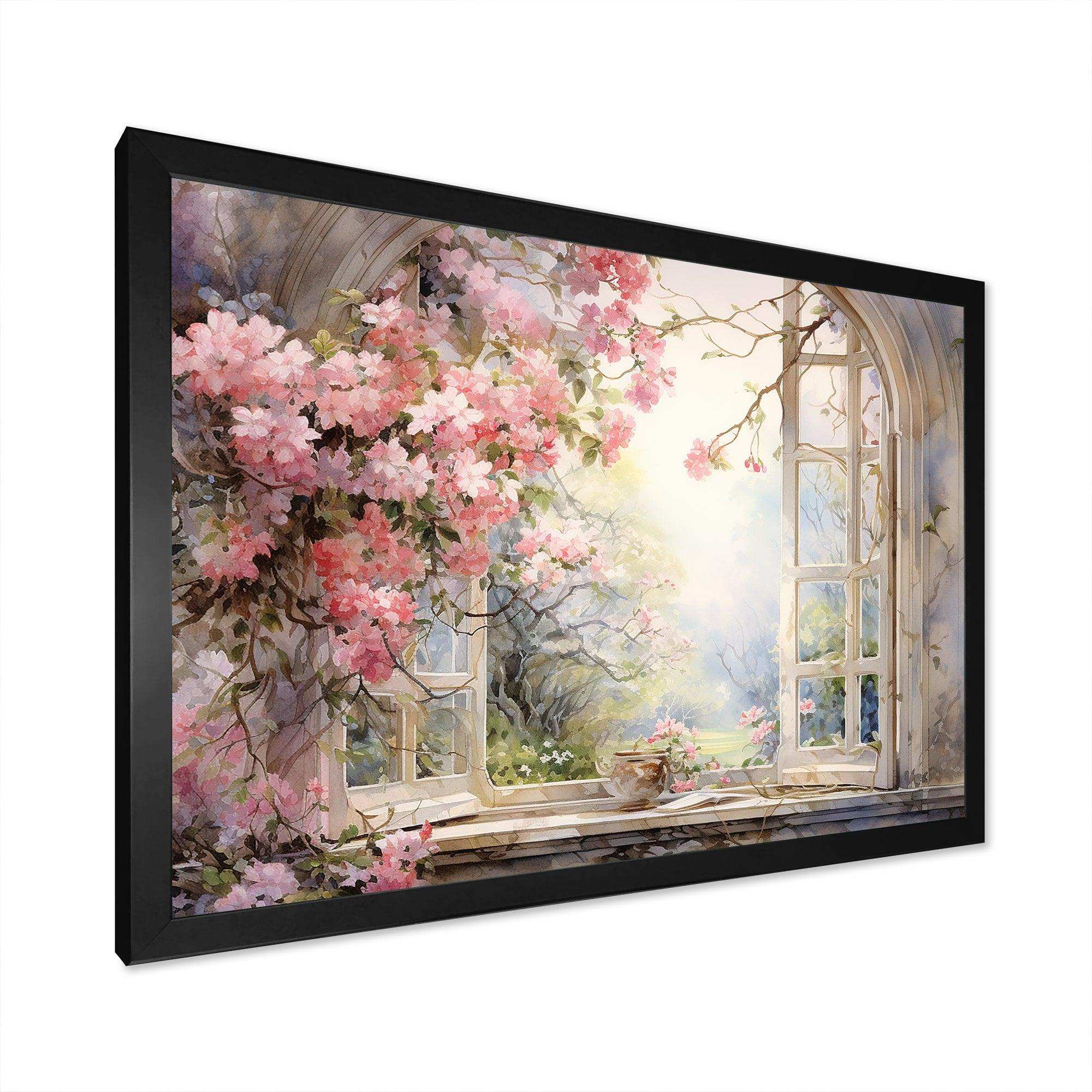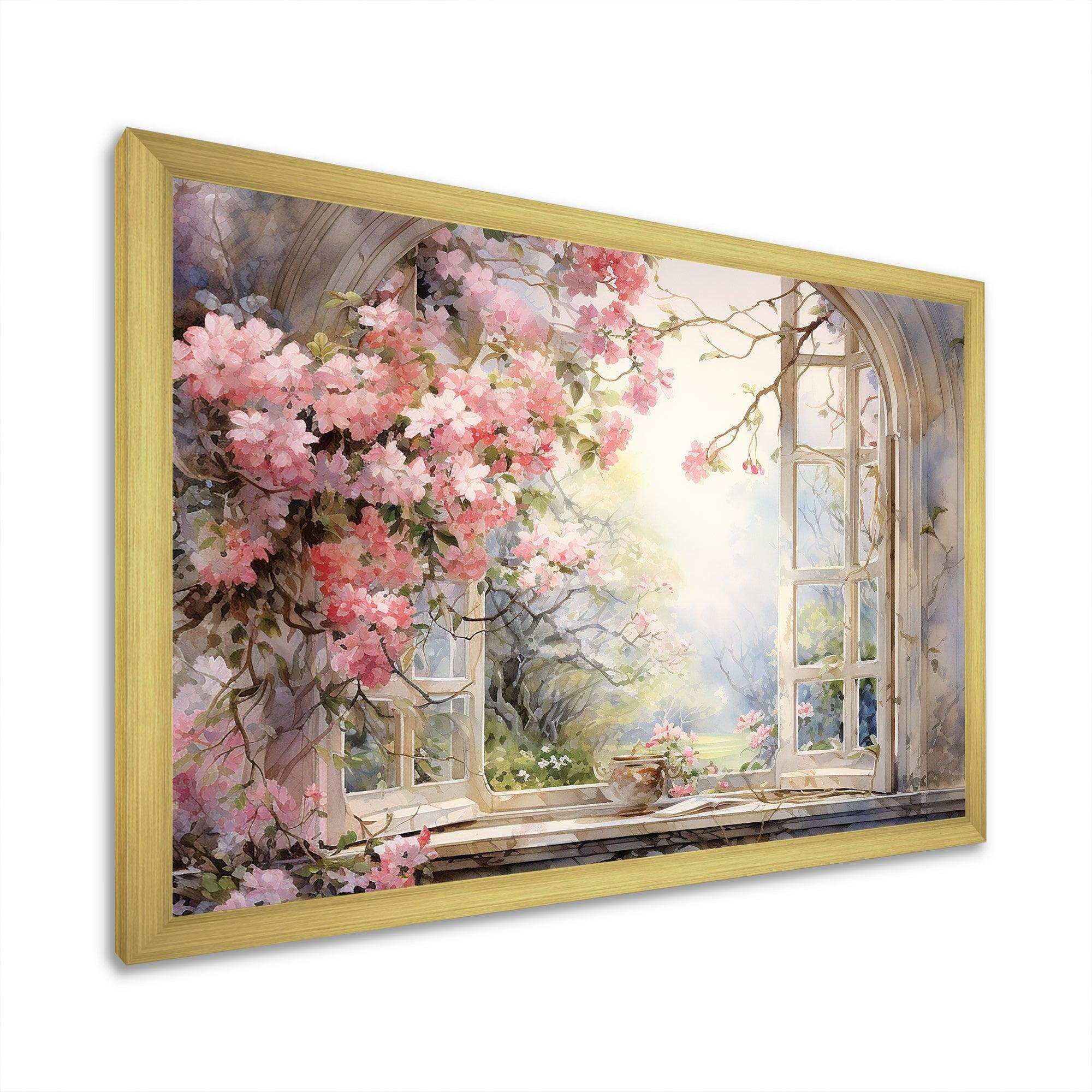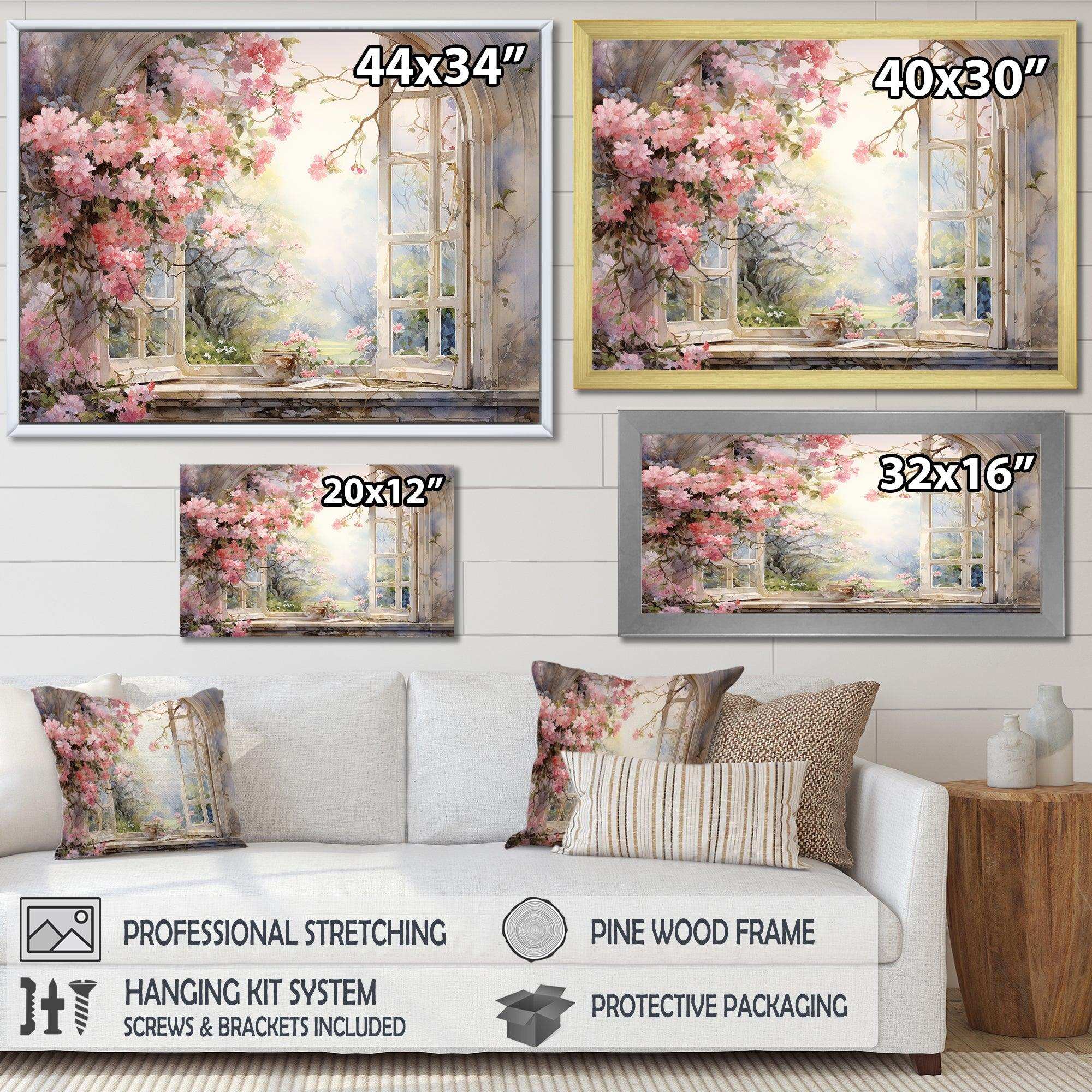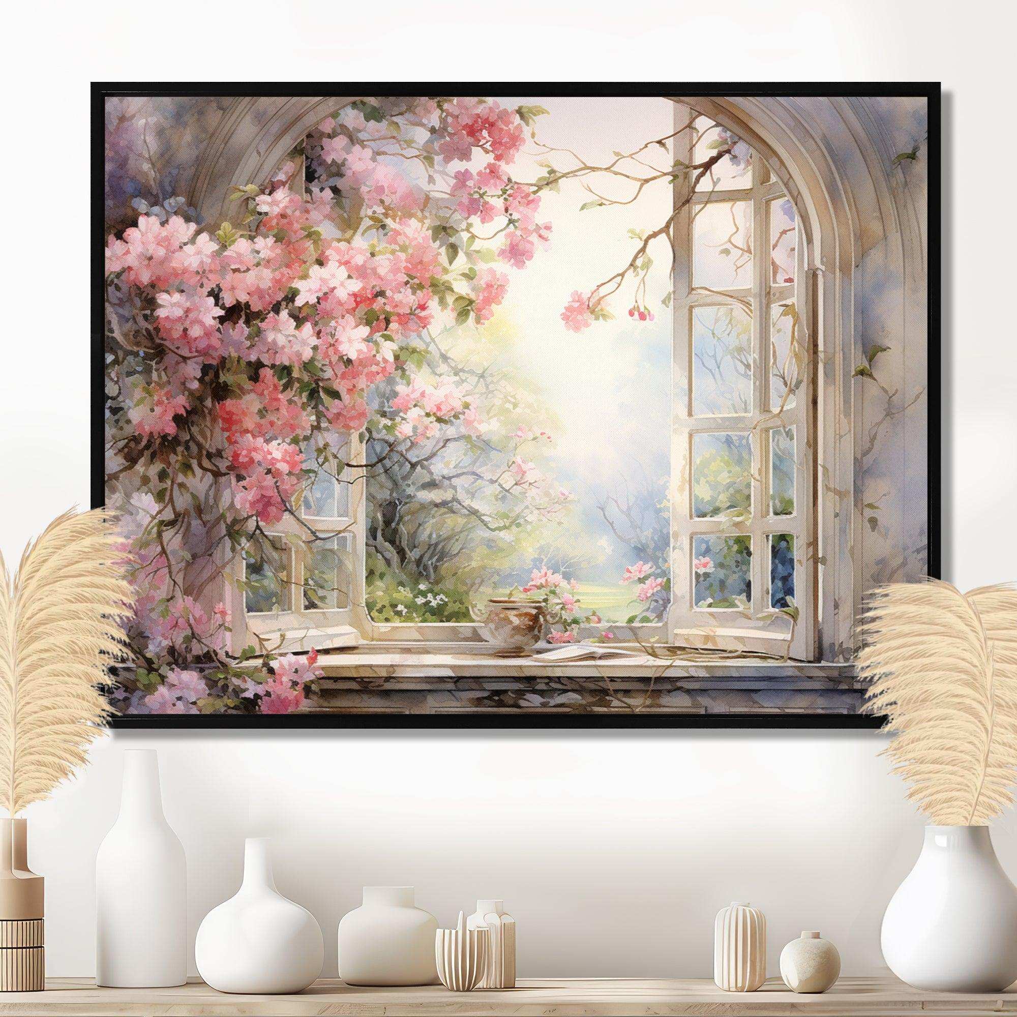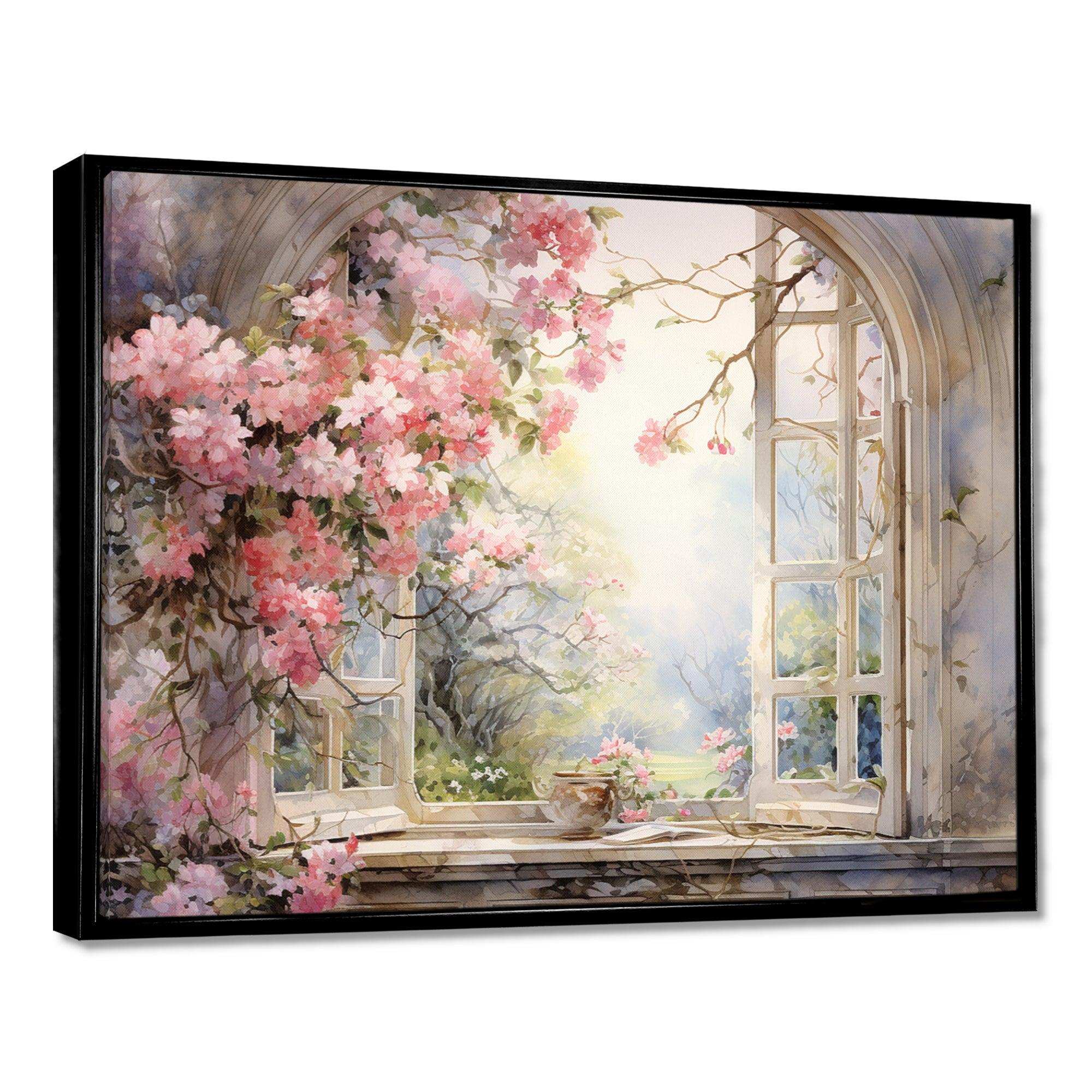 Pink Blossoming country window Gaze I - Floral Canvas Wall Art