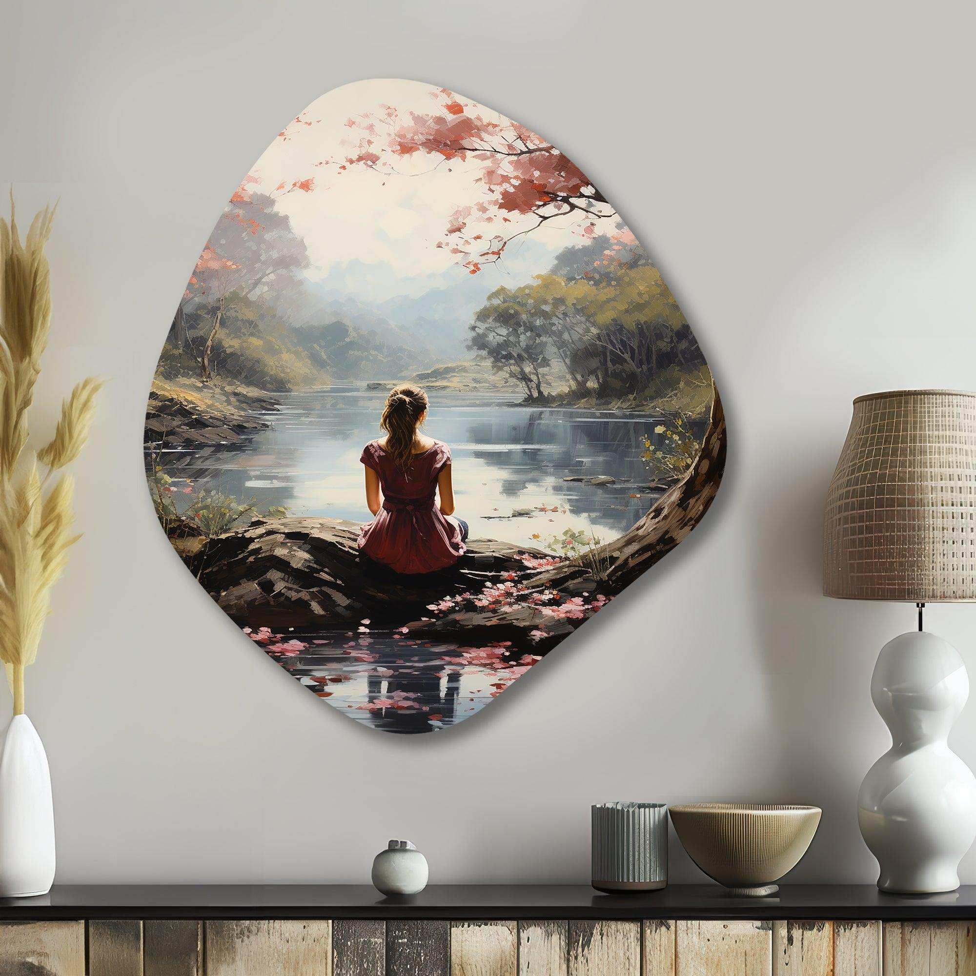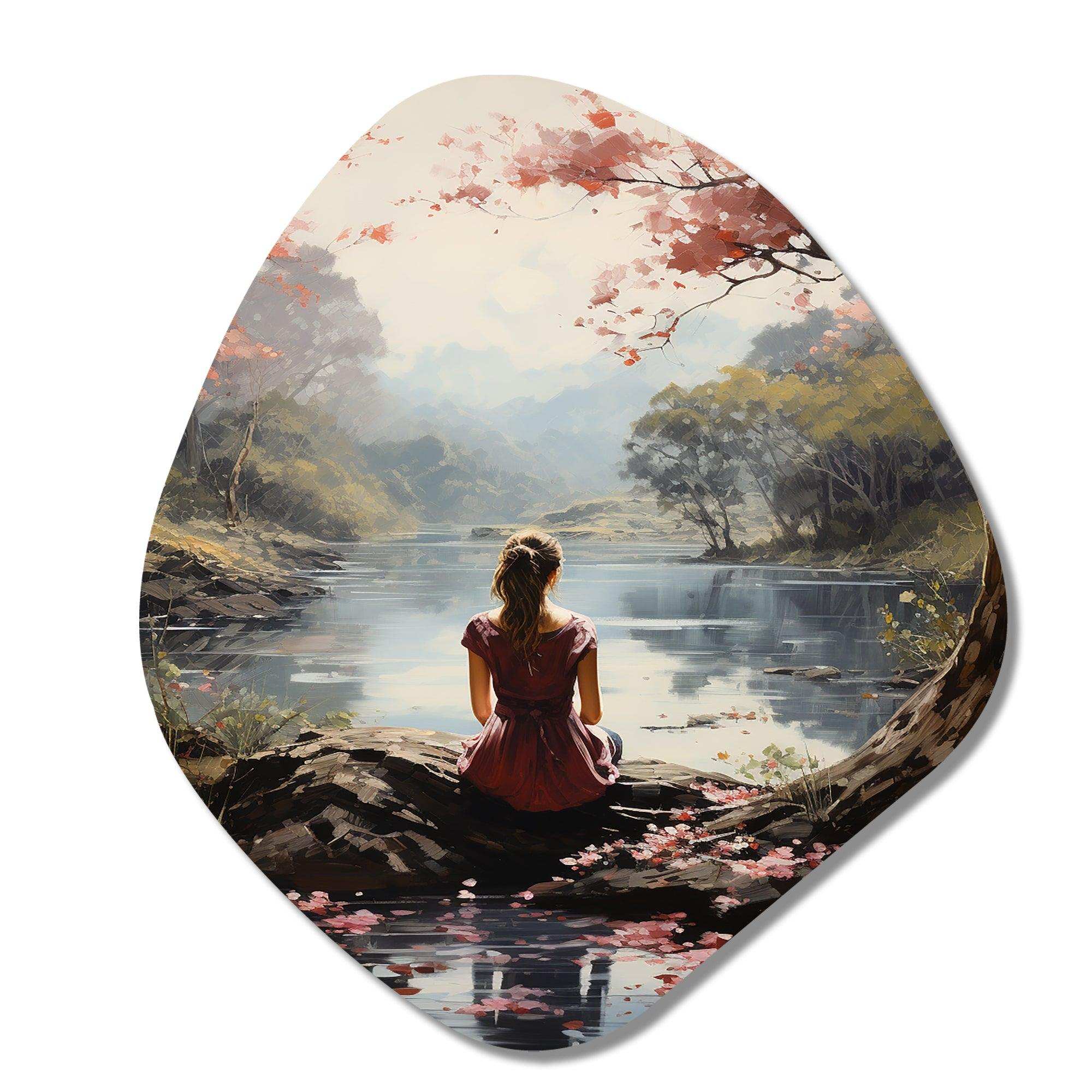 Pink Brown Meditation Serenity In Nature - Asymmetric Metal Wall Art