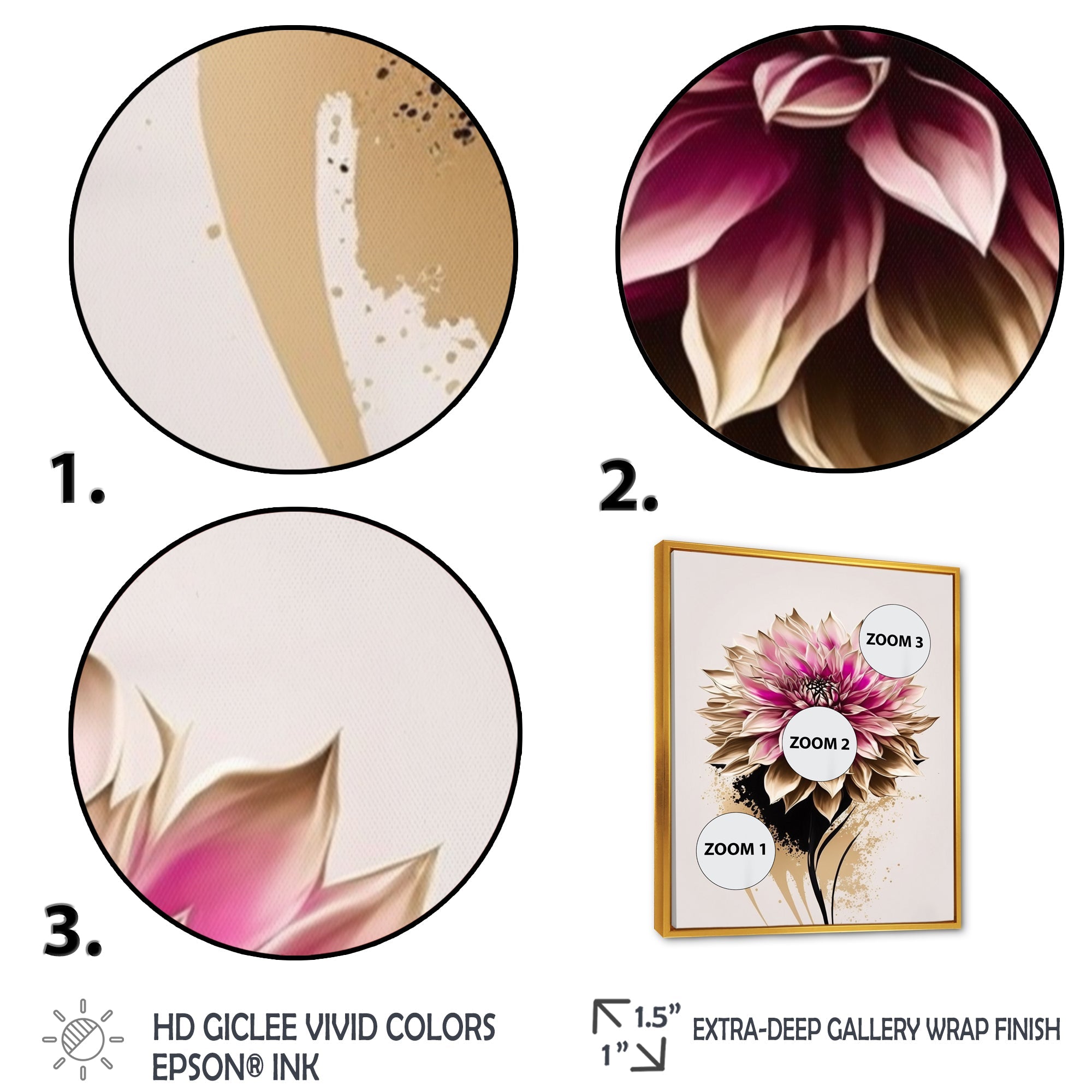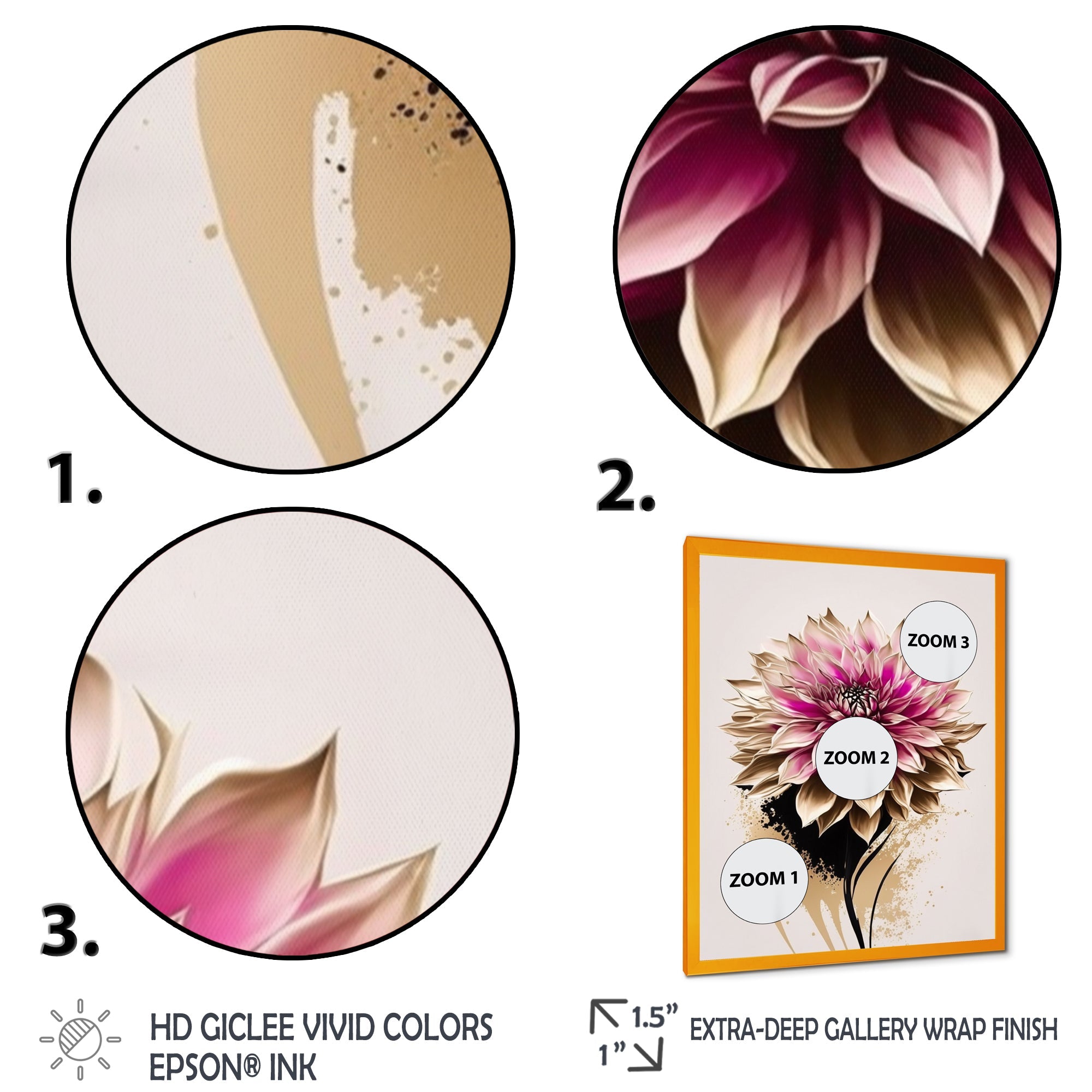 - This canvas giclee print is gallery-wrapped (the design continues on the sides) , giving it a real art gallery feel.